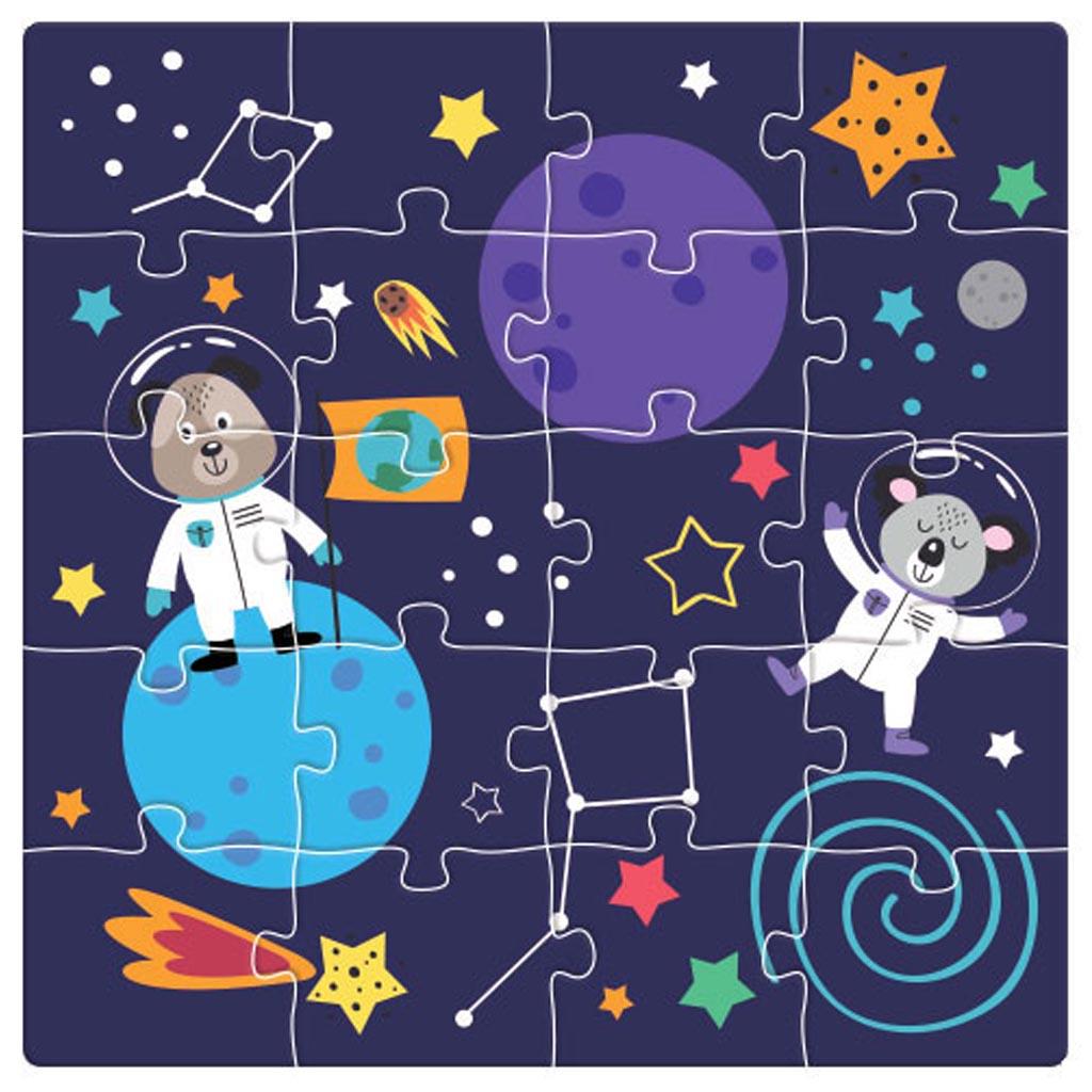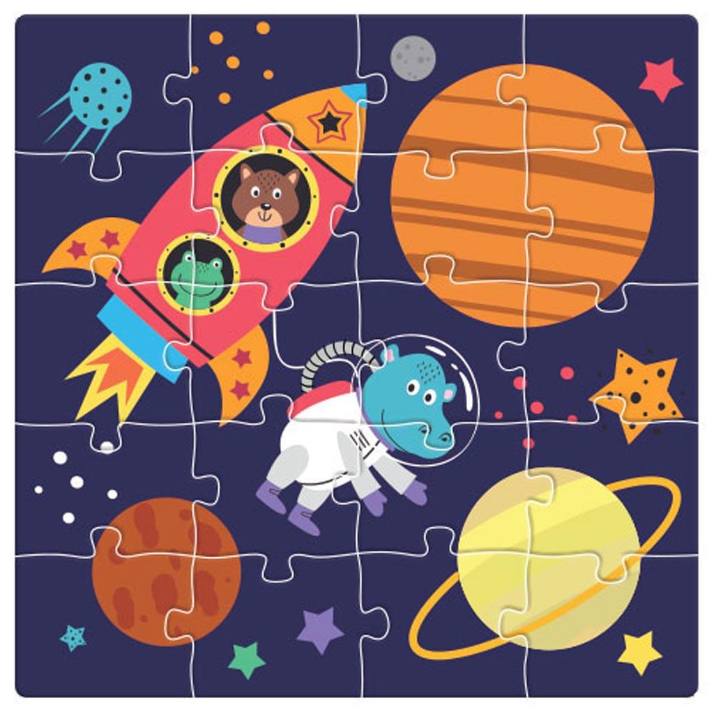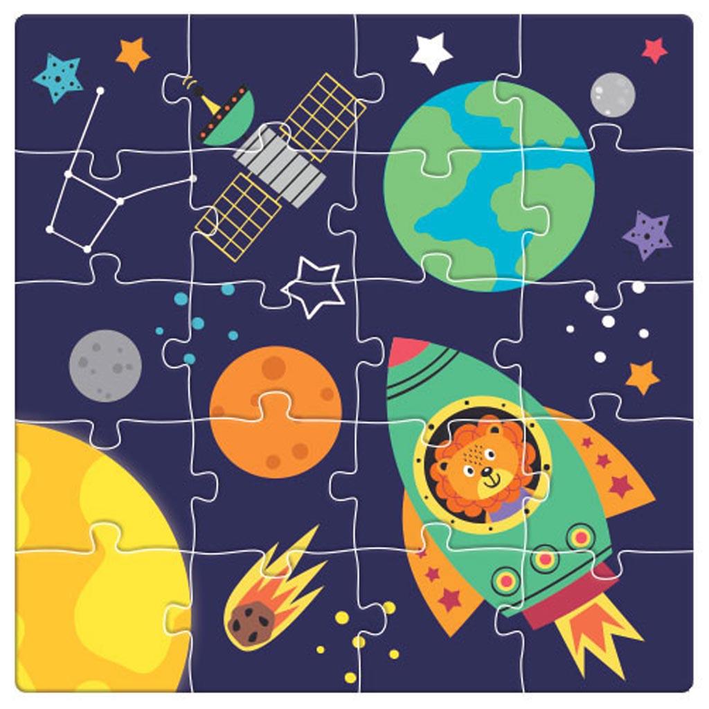 - Περιλαμβάνει 3 παζλ 20 τμχ. το καθένα που απεικονίζουν πλανήτες και όχι μόνο και μια μαγνητική επιφάνεια που διπλώνει.