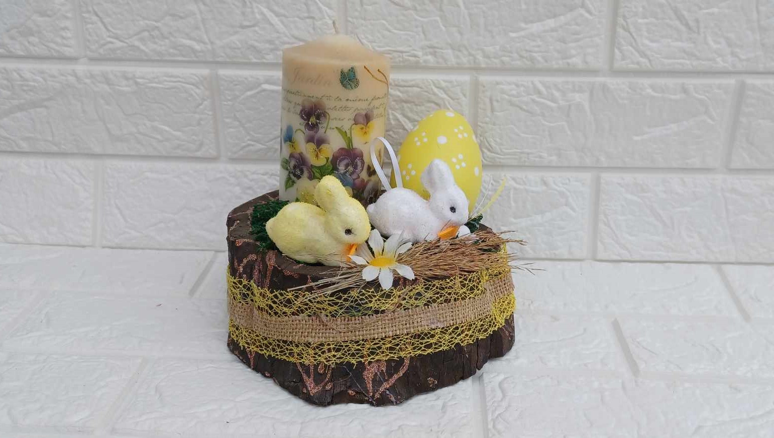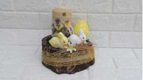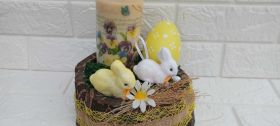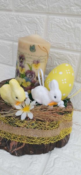 Διακοσμητικός κορμός με κερί και κουνέλια