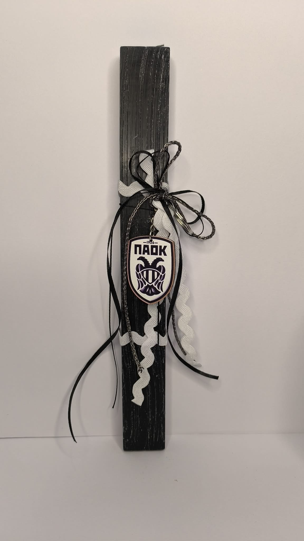 Λαμπάδα ΠΑΟΚ με διακοσμητικό μπρελόκ.
