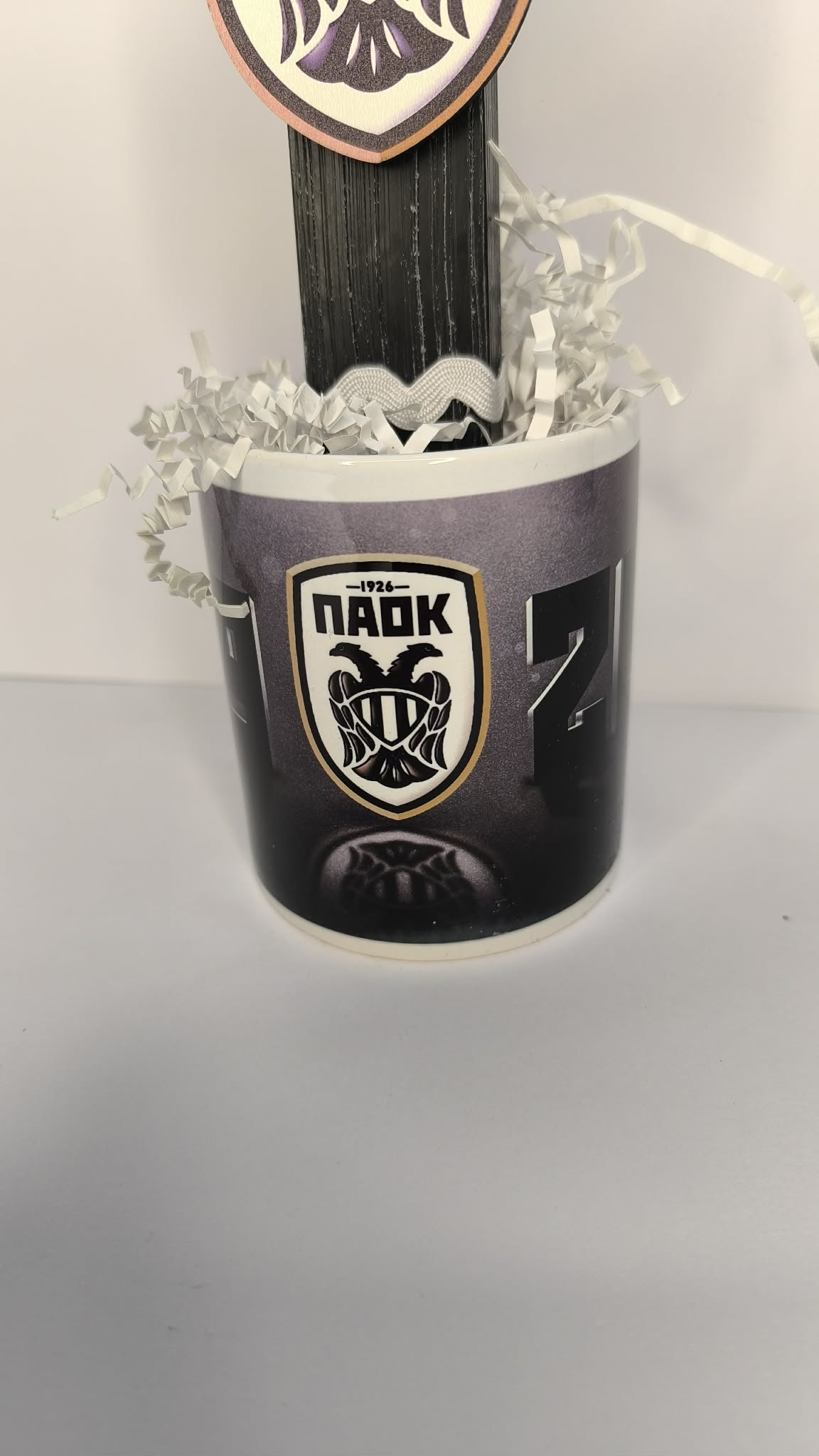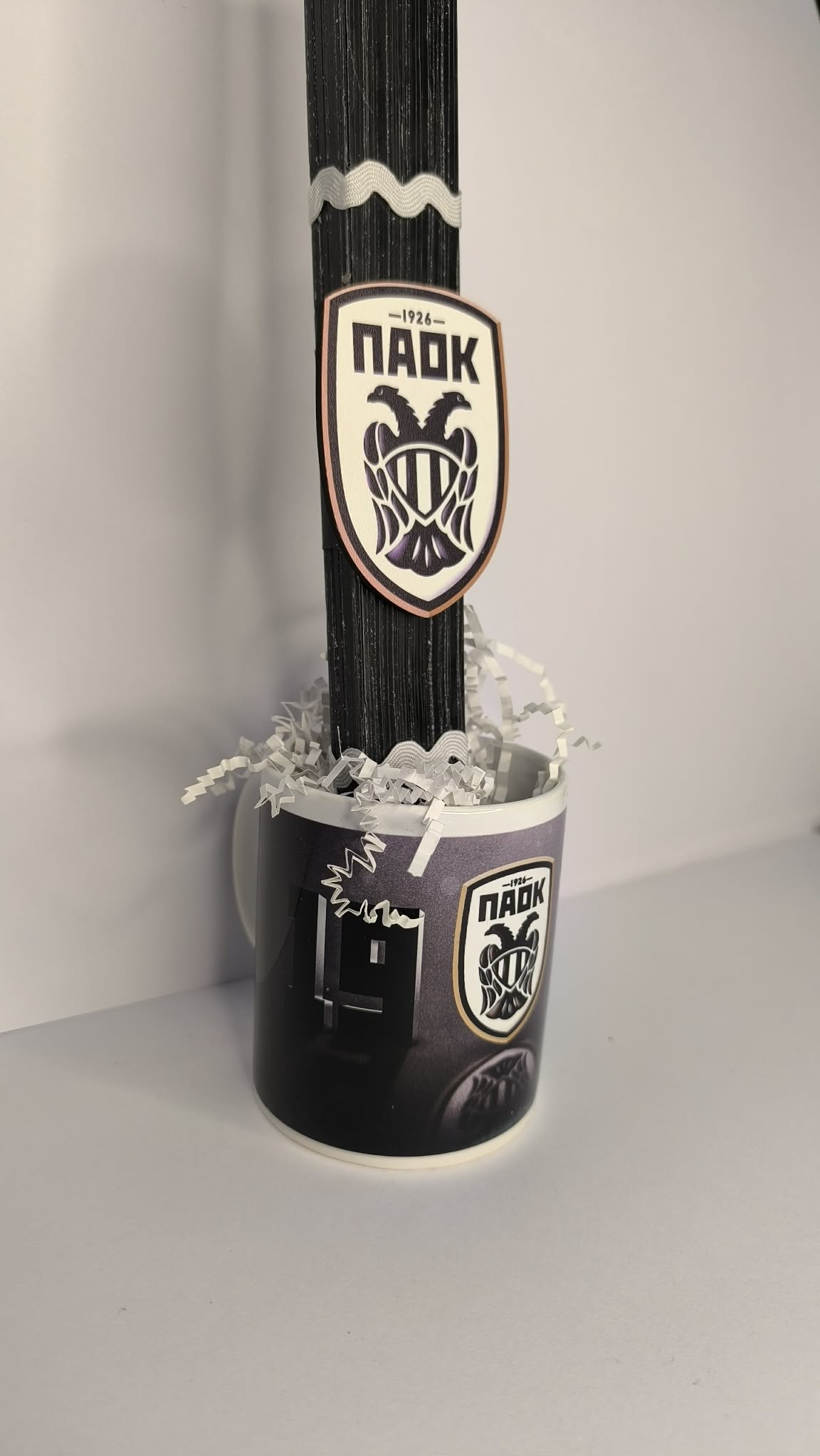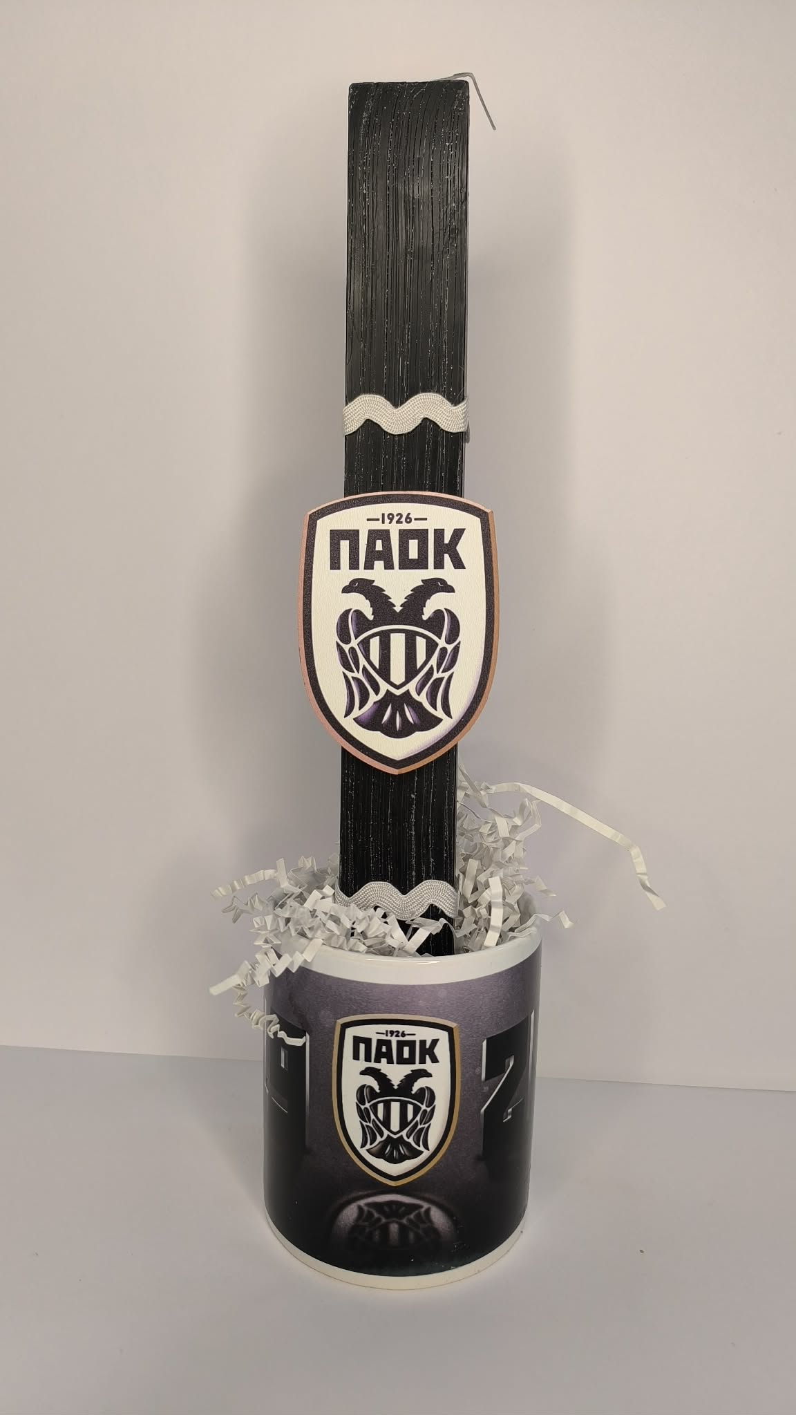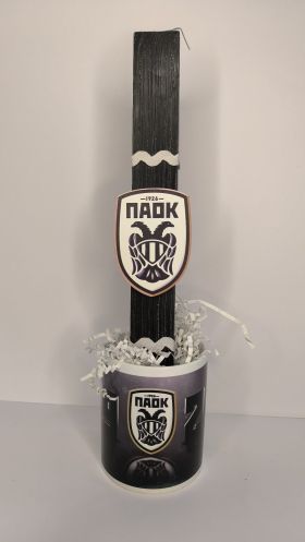 Λαμπάδα με ξύλινο διακοσμητικό ΠΑΟΚ με κούπα ΠΑΟΚ!