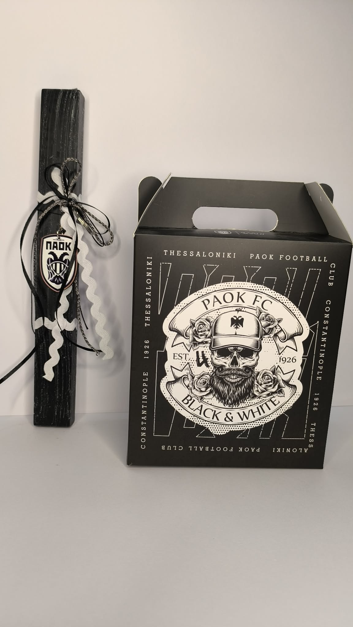 Λαμπάδα διακοσμημένη με μπρελόκ ΠΑΟΚ κ box Κωνσταντινουπολιτών!