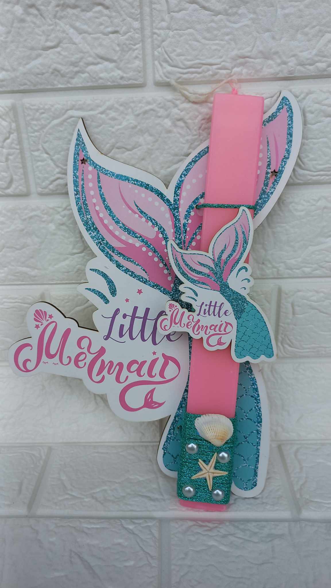 Λαμπάδα γοργόνα little mermaid με πλάτη και διακοσμητική φιγούρα