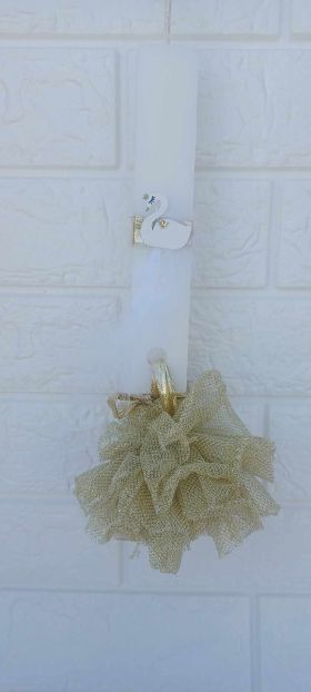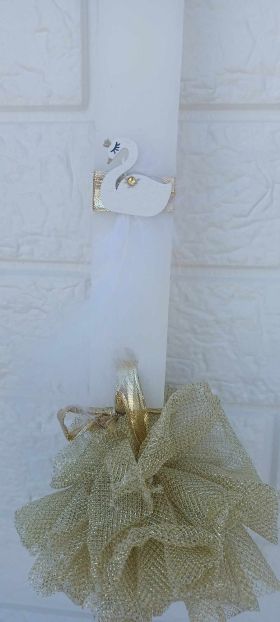 Λαμπάδα κύκνος με κρεμαστή χρυσή τούλινη μπάλα