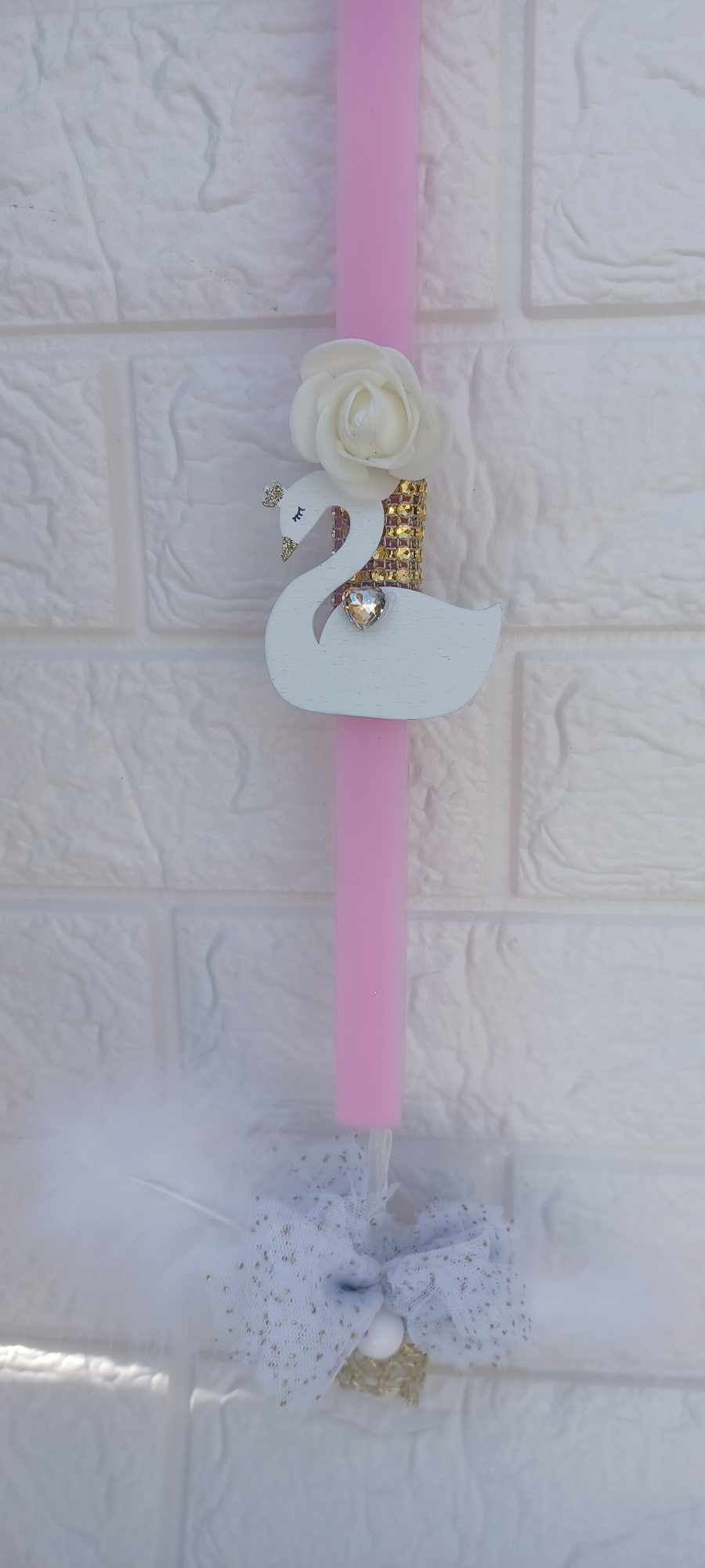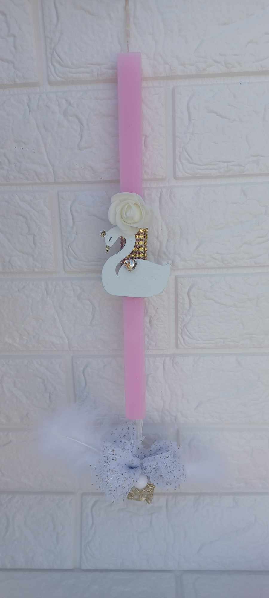 Λαμπάδα κύκνος με κρεμαστή τούλινη μπάλα