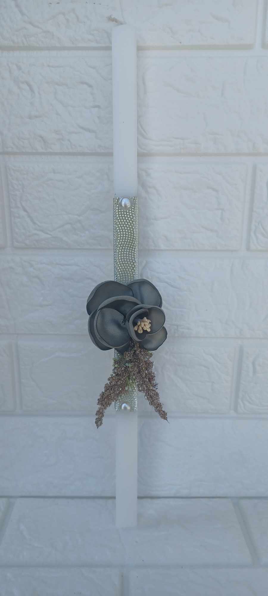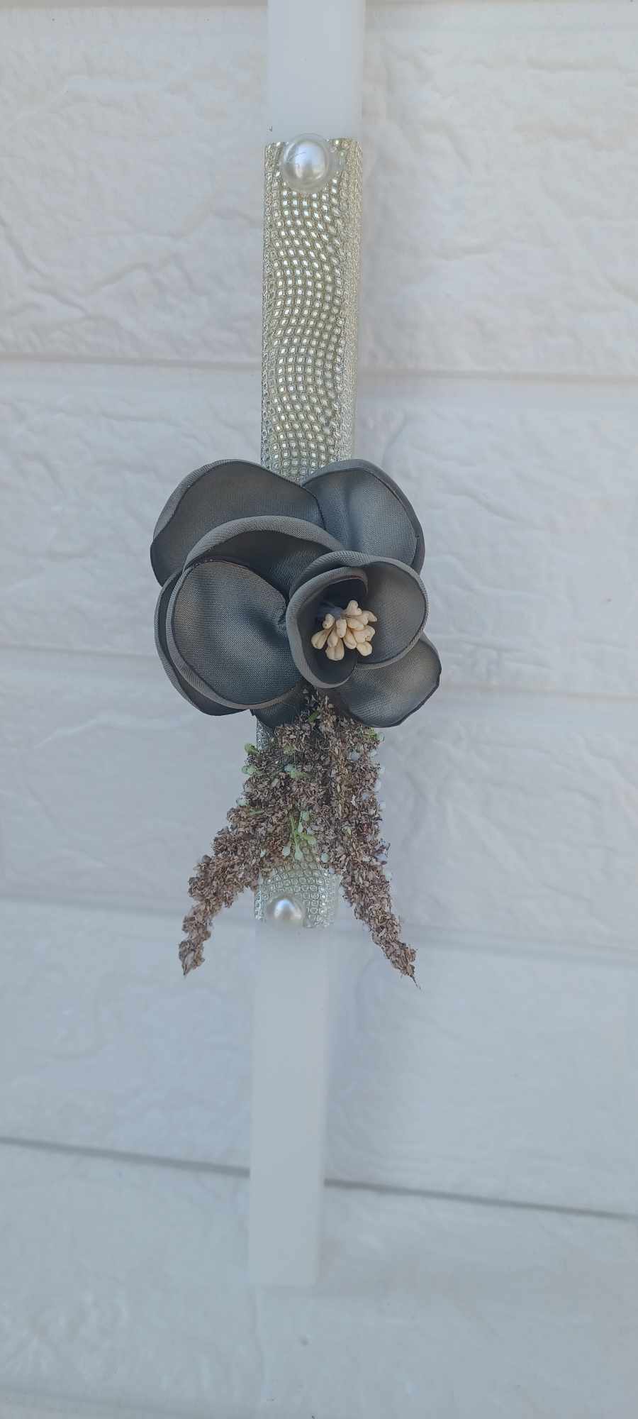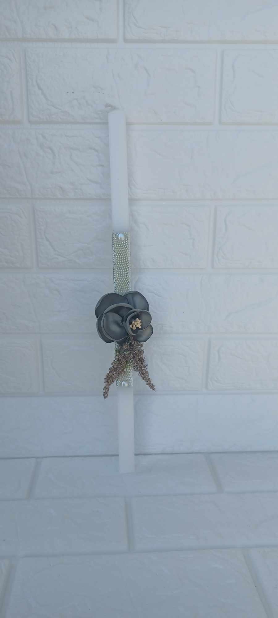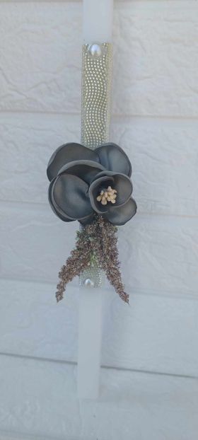 Λαμπάδα λουλούδι γκρι με χρυσή λεπτομέρεια