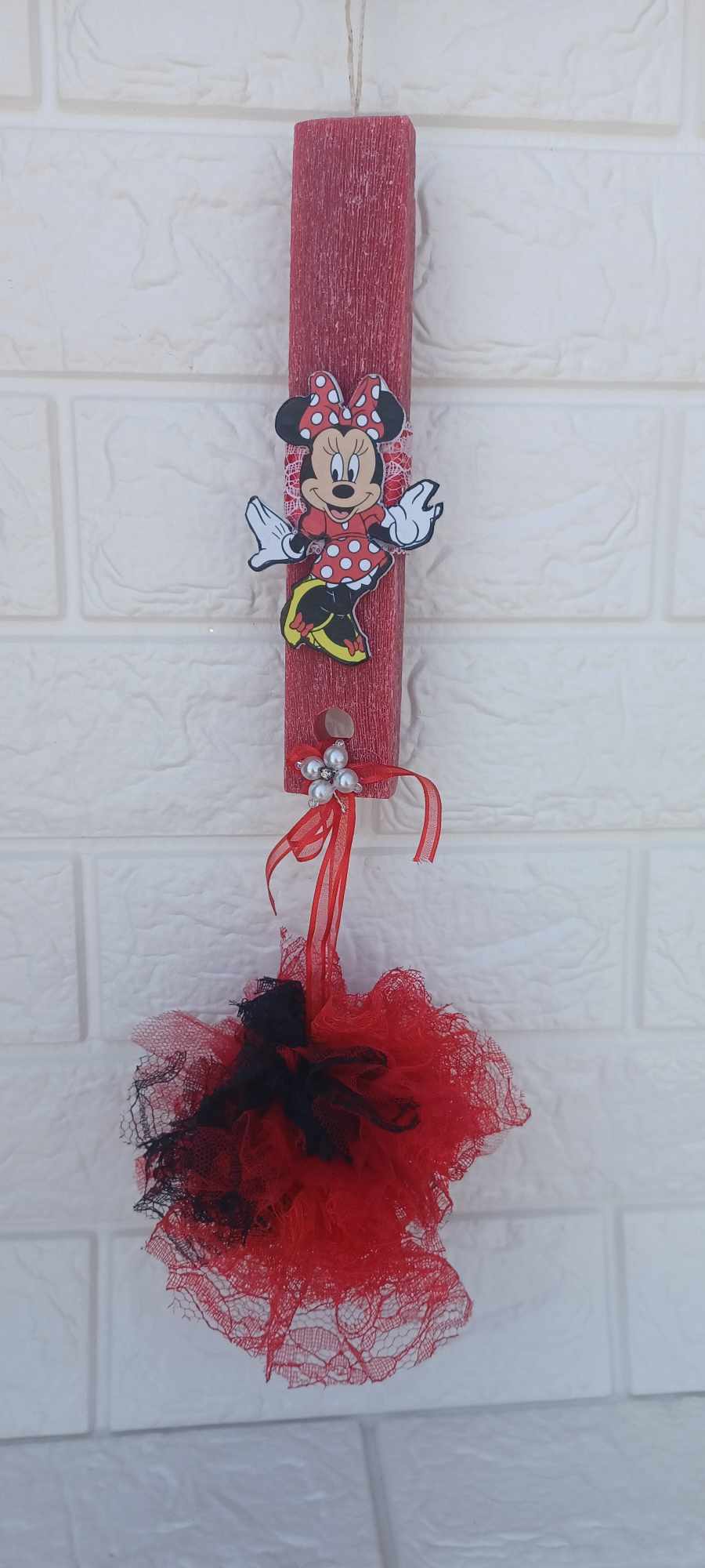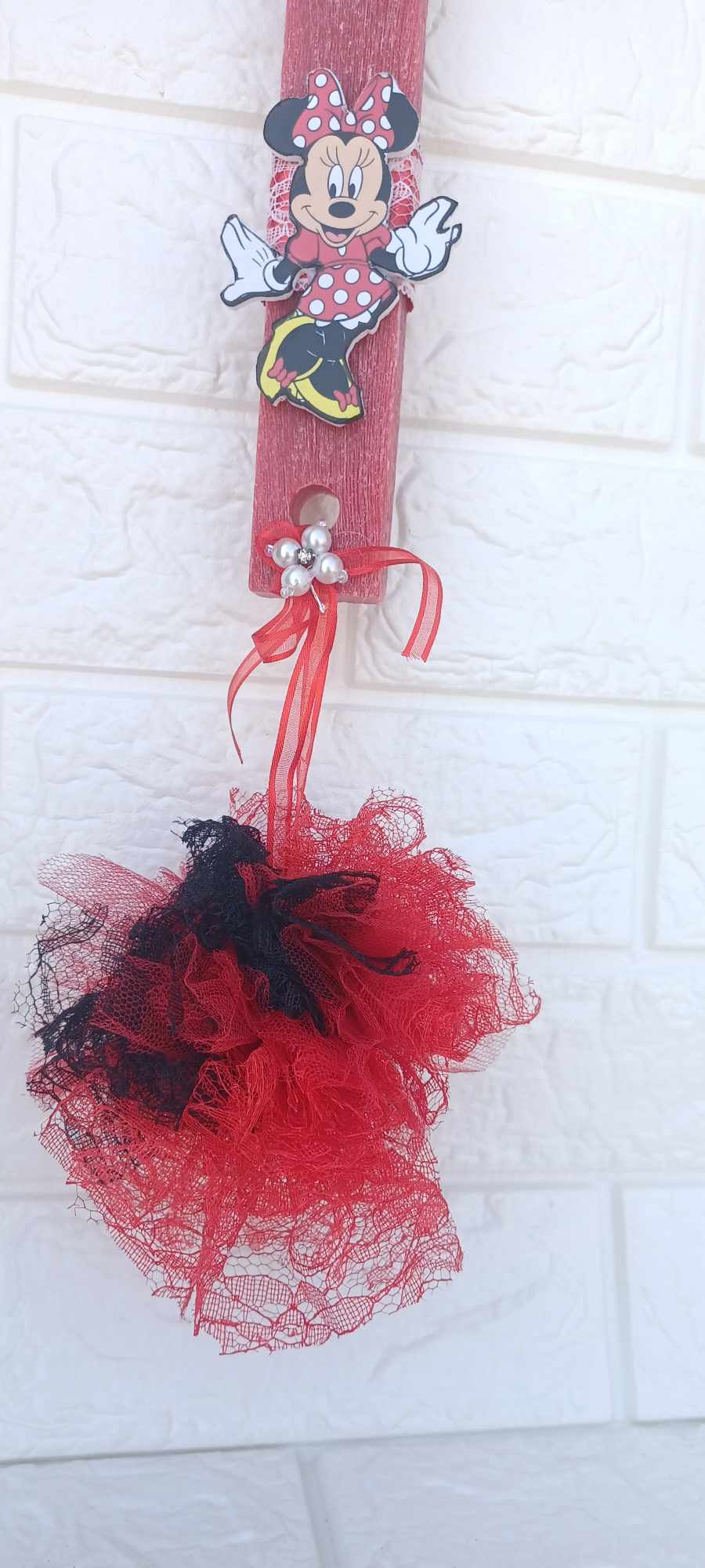 Λαμπάδα Minnie Mouse με κόκκινη τούλινη μπάλα