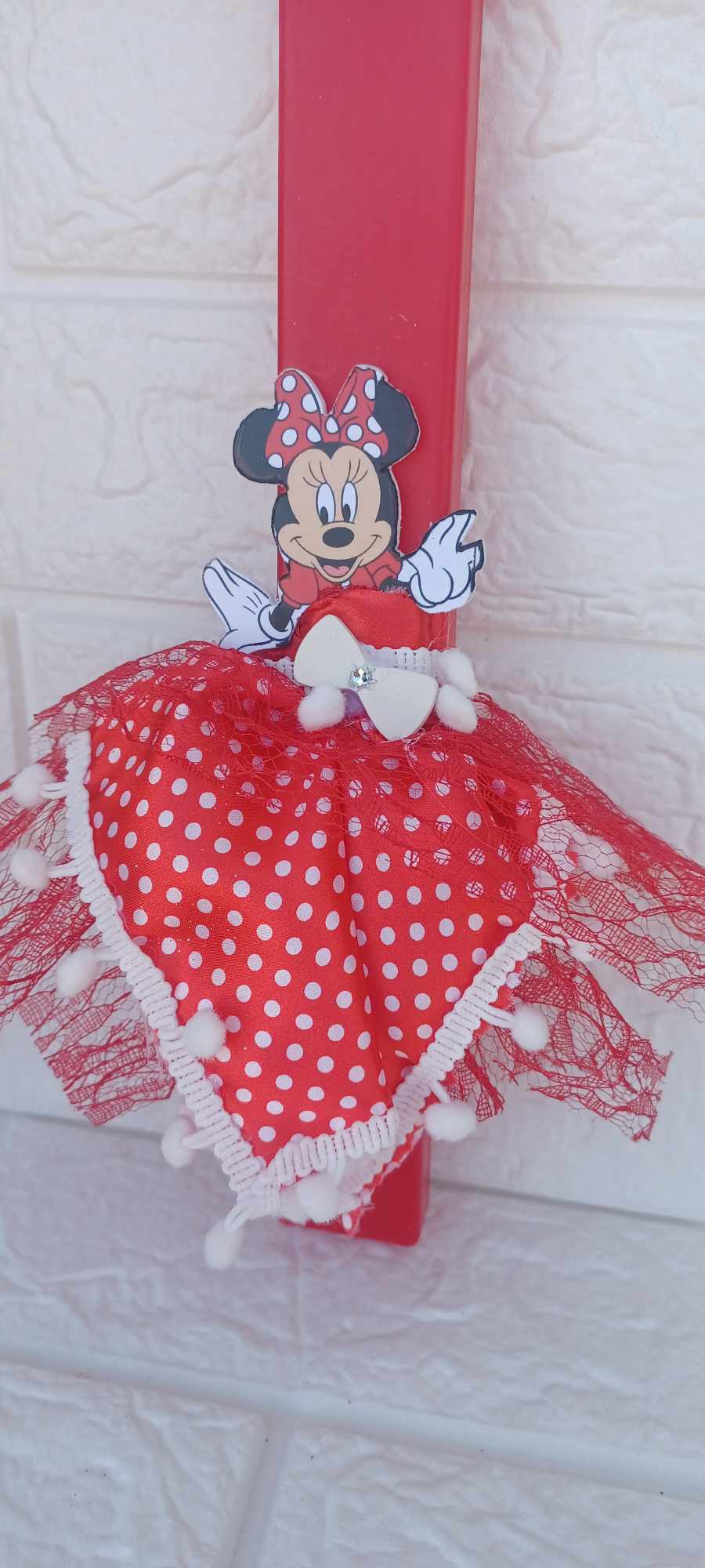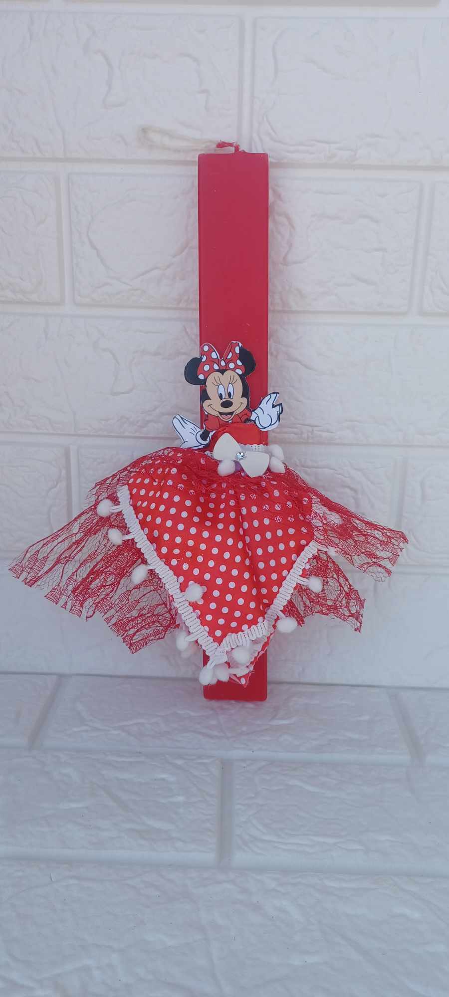 Λαμπάδα Minnie Mouse με κόκκινο φόρεμα