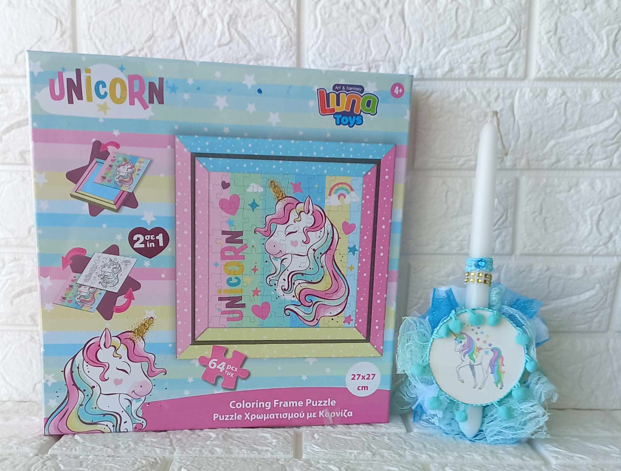 Λαμπάδα Unicorn με κορνίζα χρωματισμού puzzle