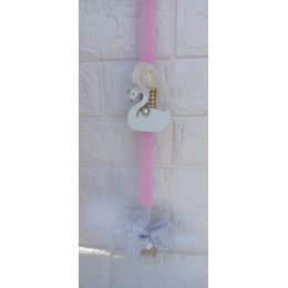 Λαμπάδα κύκνος με κρεμαστή τούλινη μπάλα