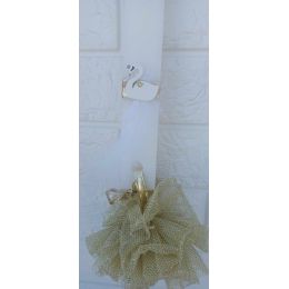 Λαμπάδα κύκνος με κρεμαστή χρυσή τούλινη μπάλα
