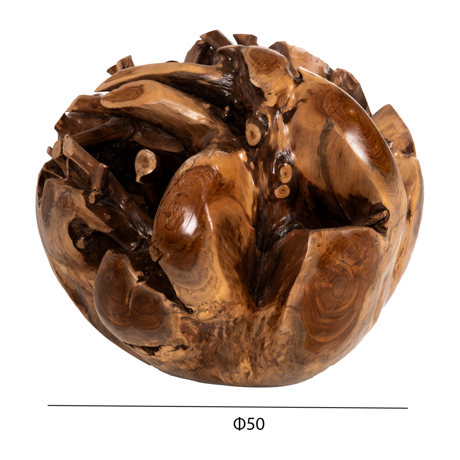 Το διακοσμητικό δαπέδου CLEM θα δώσει μια άλλη «οπτική» στον χώρο σας. Το σχεδόν σφαιρικό design του είναι μοναδικό κι ενδιαφέρον ενώ μπορεί να ταιριάξει με πολλά διακοσμητικά μοτίβα. Το γυαλισμένο κομμάτι ξύλου που αποτελεί το διακοσμητικό είναι στο φυσικό του χρώμα και οι διαστάσεις όλης της κατασκευής καθιστούν αυτό το κομμάτι επιβλητικό οπουδήποτε κι αν τοποθετηθεί.