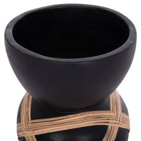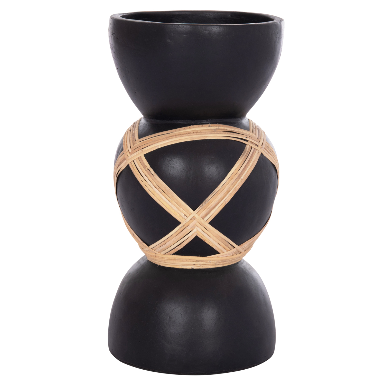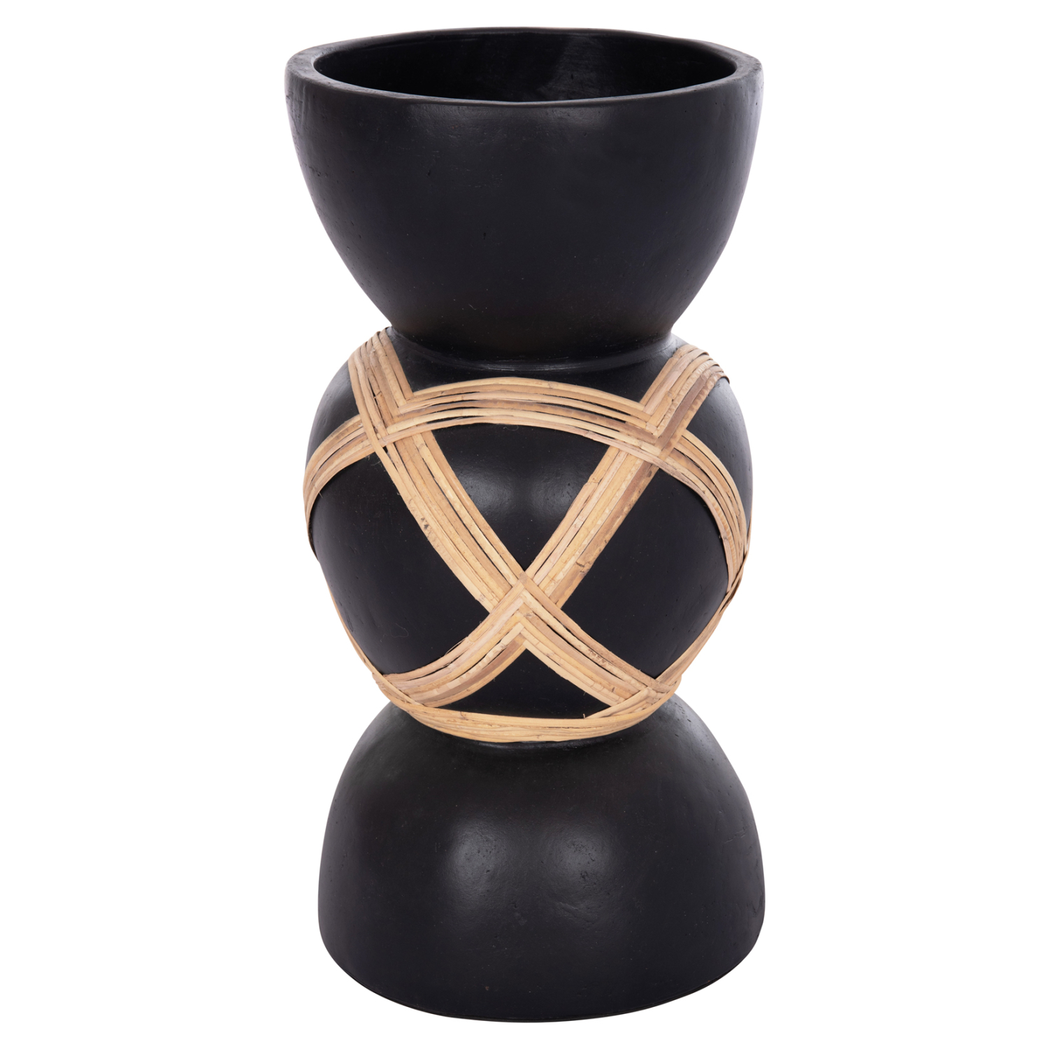 Το χειροποίητο διακοσμητικό βάζο δαπέδου MAYNARD είναι ένα όμορφο διακοσμητικό στοιχείο για κάθε χώρο. Είναι κατασκευασμένο εξολοκλήρου από TERRACOTTA σε ΜΑΥΡΟ χρώμα με διακόσμηση από φυσικό Rattan. Ιδανικό για πληθώρα χρήσεων και χώρων.