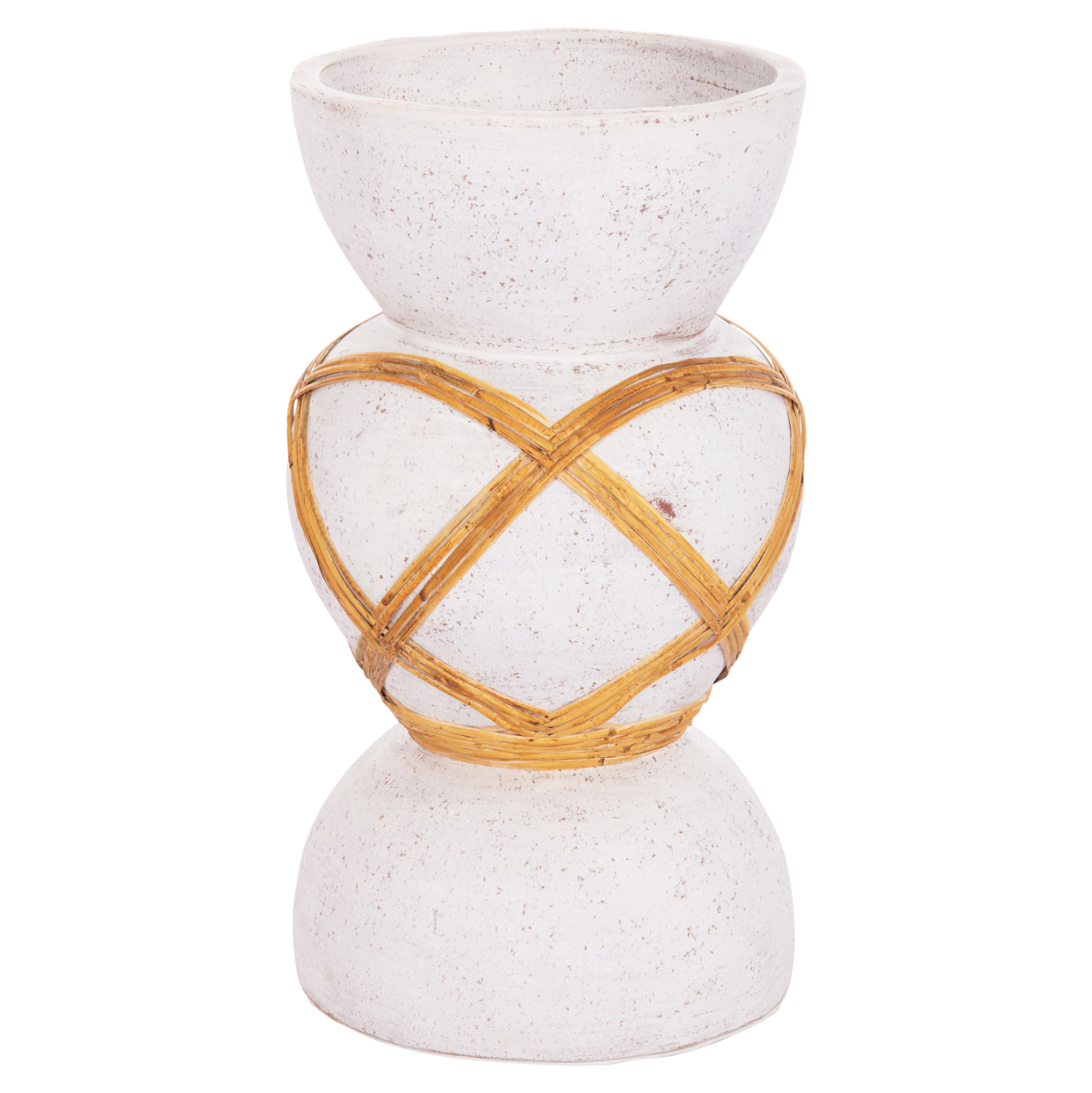 Το χειροποίητο διακοσμητικό βάζο δαπέδου MAYNARD είναι ένα όμορφο διακοσμητικό στοιχείο για κάθε χώρο. Είναι κατασκευασμένο εξολοκλήρου από TERRACOTTA σε ΛΕΥΚΟ χρώμα με διακόσμηση από φυσικό Rattan. Ιδανικό για πληθώρα χρήσεων και χώρων.