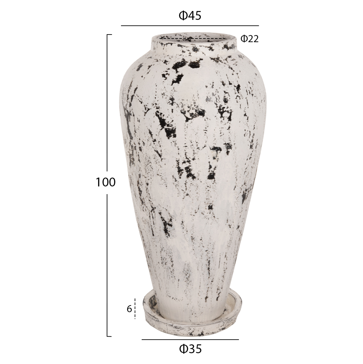 Το ψηλό κι επιβλητικό διακοσμητικό βάζο δαπέδου LAUREL είναι φτιαγμένο με κλασικό σχεδιασμό και πατάει σε ένα πιατάκι ίδιας αισθητικής και από το ίδιο υλικό. Έρχεται σε ANTIQUE ΛΕΥΚΗ απόχρωση και μπορεί να ταιριάξει οπουδήποτε το θελήσετε. Είτε στο σπίτι είτε σε επαγγελματικούς χώρους.
