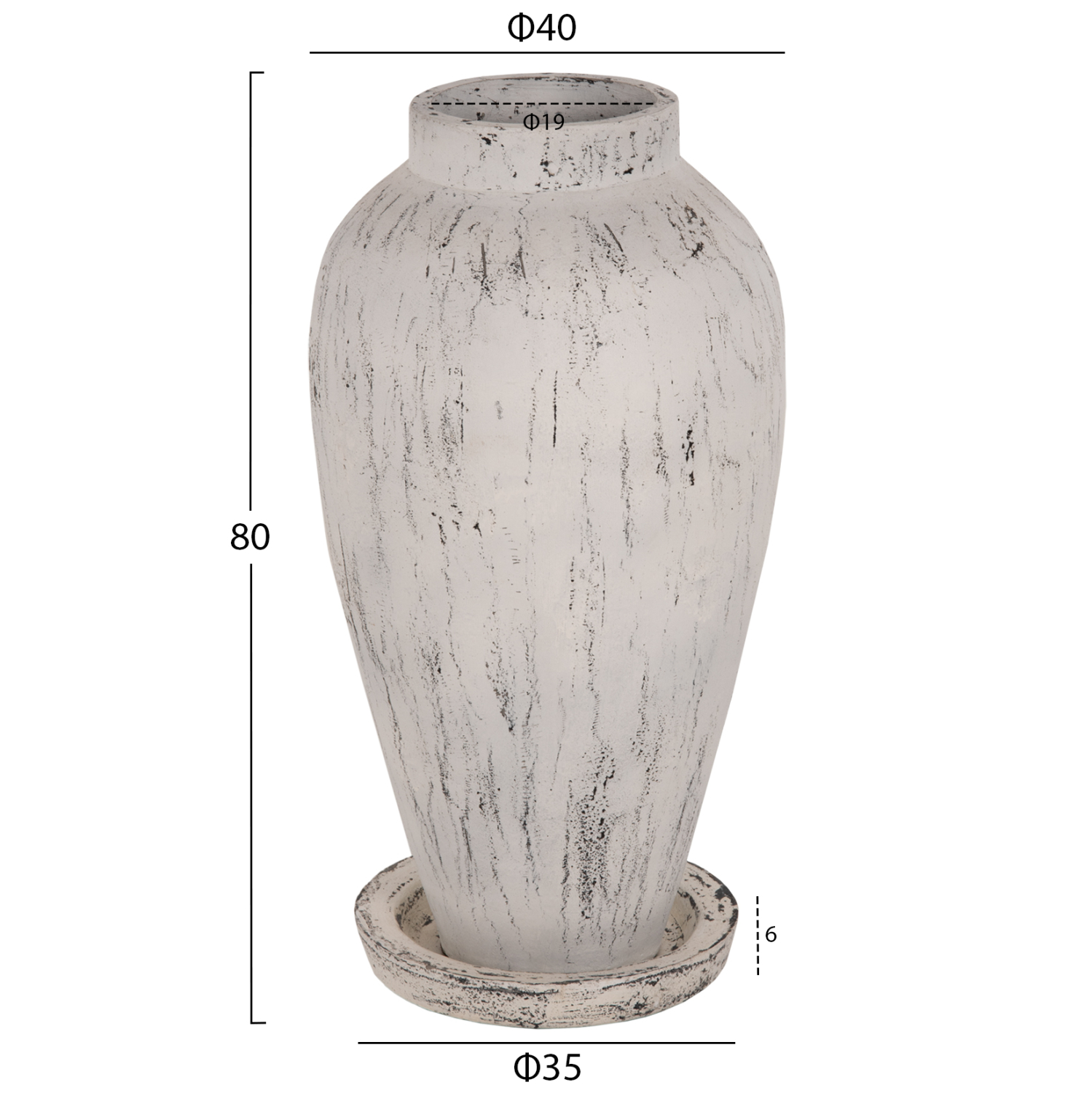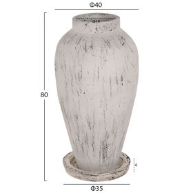 Το ψηλό κι επιβλητικό διακοσμητικό βάζο δαπέδου LAUREL είναι φτιαγμένο με κλασικό σχεδιασμό και πατάει σε ένα πιατάκι ίδιας αισθητικής και από το ίδιο υλικό. Έρχεται σε ANTIQUE ΛΕΥΚΗ απόχρωση και μπορεί να ταιριάξει οπουδήποτε το θελήσετε. Είτε στο σπίτι είτε σε επαγγελματικούς χώρους.