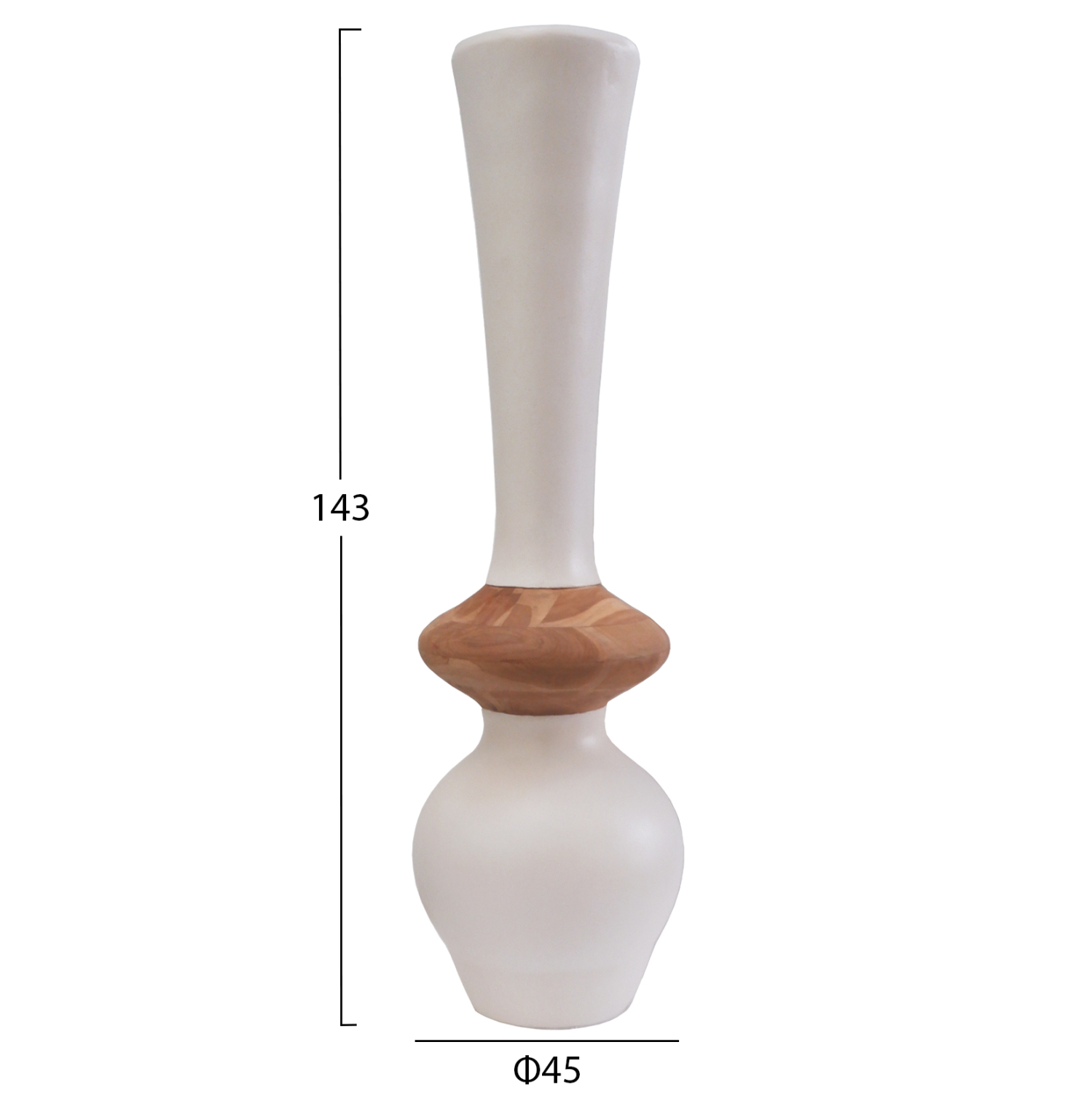 Το χειροποίητο διακοσμητικό βάζο δαπέδου NEBULA είναι ένα πολύ ιδιαίτερο διακοσμητικό στοιχείο για κάθε χώρο. Είναι κατασκευασμένο εξολοκλήρου από Fiber Cement σε ΛΕΥΚΟ χρώμα με διακόσμηση στον λαιμό από ποιοτικό ξύλο Teak, ενώ το ύψος του το καθιστά επιβλητικό στον χώρο. Ιδανικό για πληθώρα χρήσεων και χώρων.