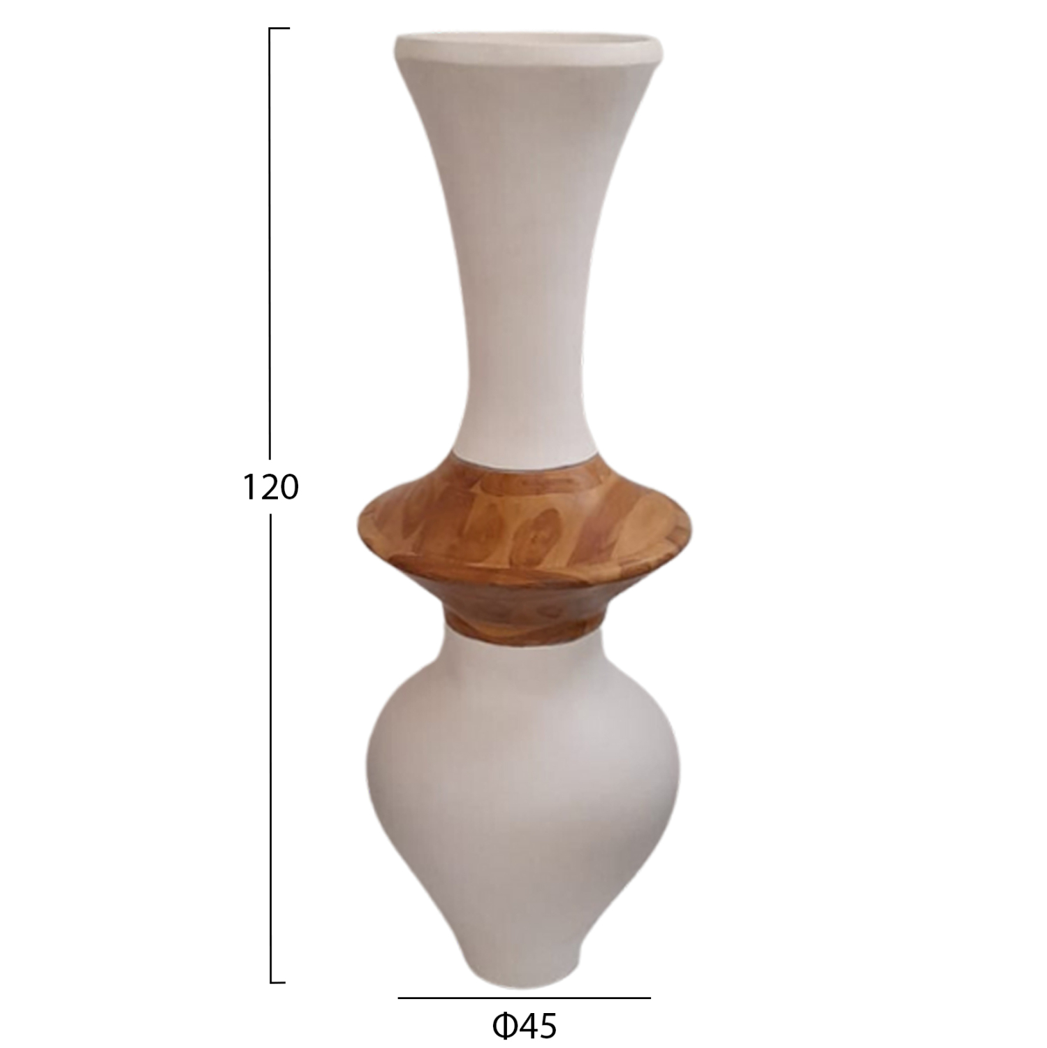 Το χειροποίητο διακοσμητικό βάζο δαπέδου NEBULA είναι ένα πολύ ιδιαίτερο διακοσμητικό στοιχείο για κάθε χώρο. Είναι κατασκευασμένο εξολοκλήρου από Fiber Cement σε ΛΕΥΚΟ χρώμα με διακόσμηση στον λαιμό από ποιοτικό ξύλο Teak, ενώ το ύψος του το καθιστά επιβλητικό στον χώρο. Ιδανικό για πληθώρα χρήσεων και χώρων.