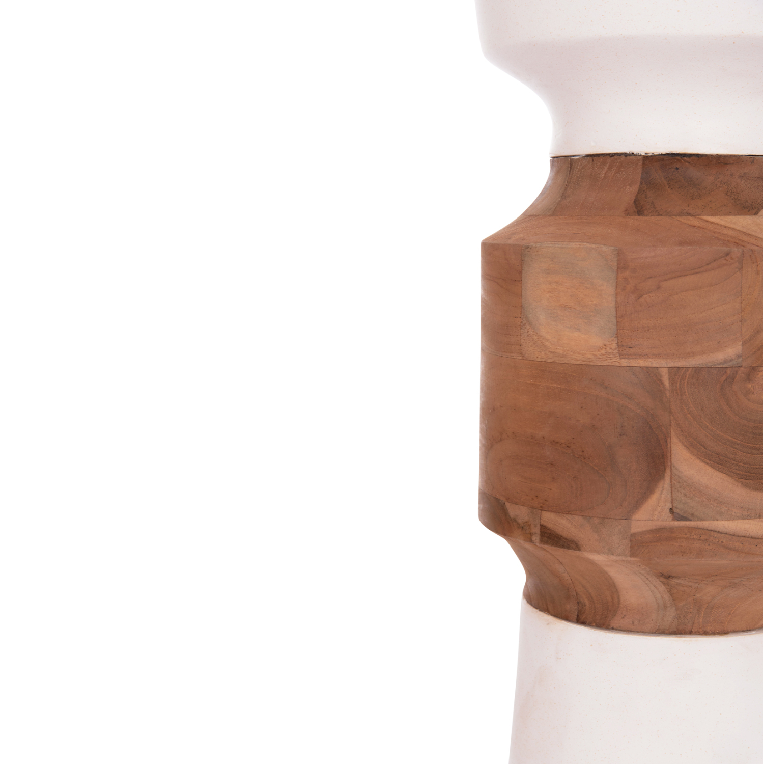 Το χειροποίητο διακοσμητικό βάζο δαπέδου NEBULA είναι ένα πολύ ιδιαίτερο διακοσμητικό στοιχείο για κάθε χώρο. Είναι κατασκευασμένο εξολοκλήρου από Fiber Cement σε ΛΕΥΚΟ χρώμα με λαιμό από ποιοτικό ξύλο Teak, ενώ το ύψος του το καθιστά επιβλητικό στον χώρο. Ιδανικό για πληθώρα χρήσεων και χώρων.