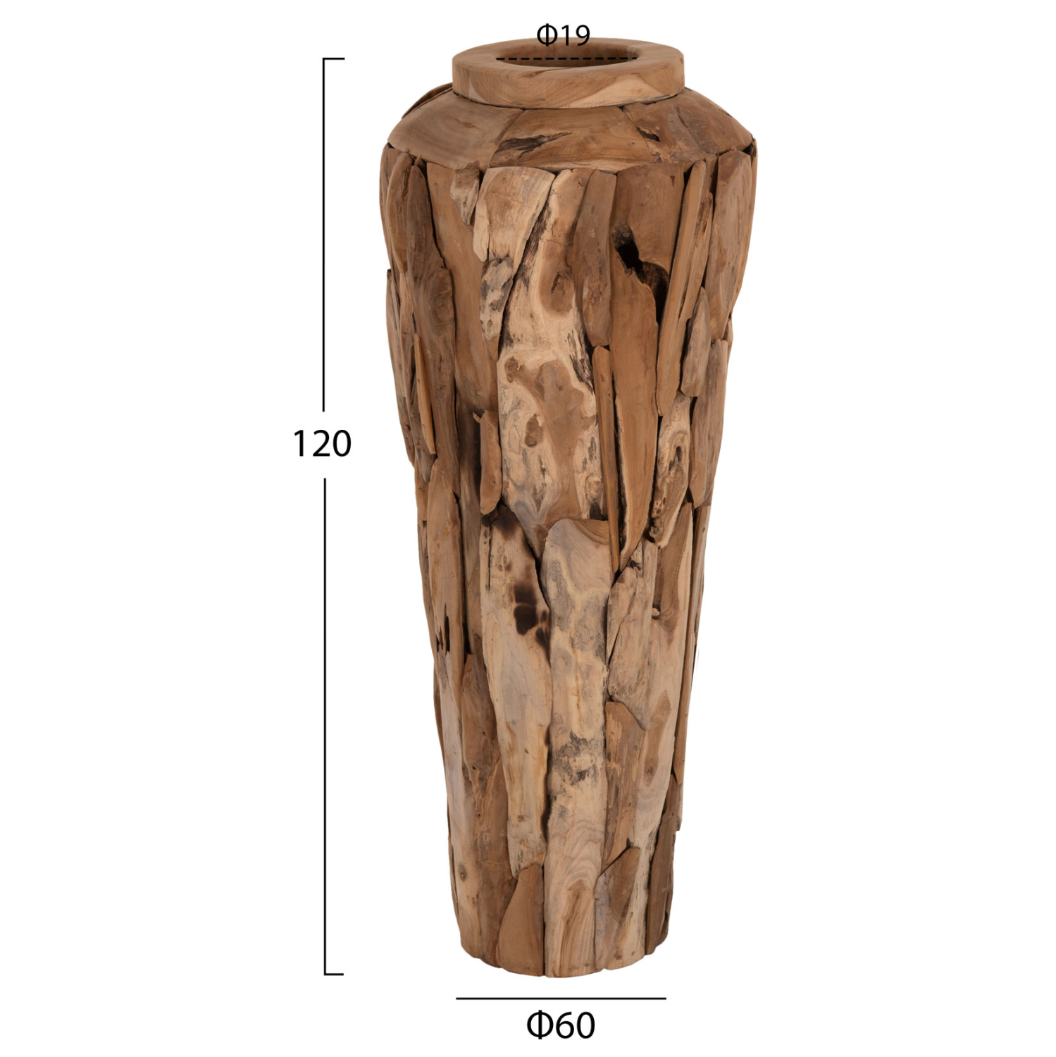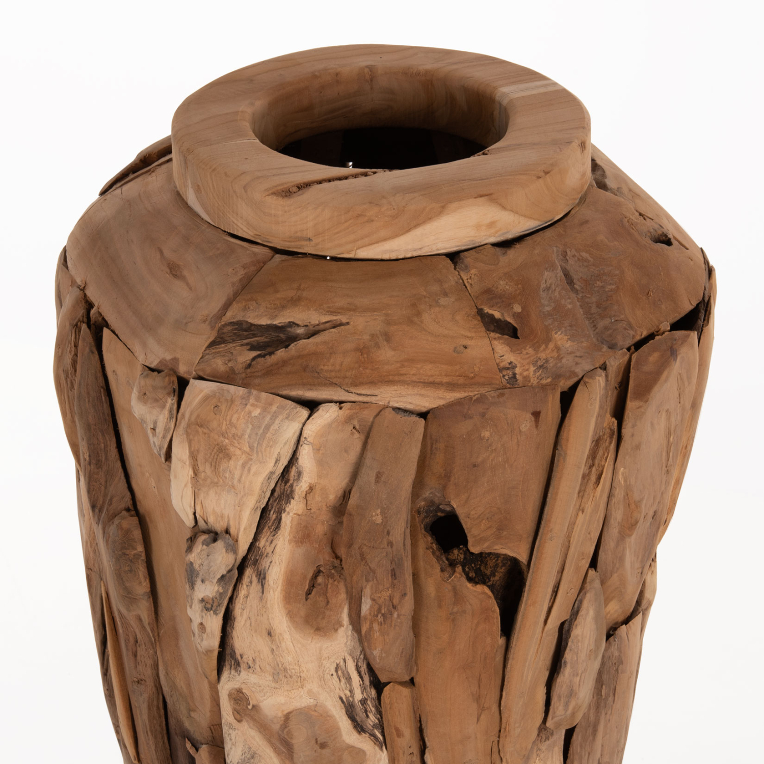 Το βάζο είναι κατασκευασμένο από ανακυκλωμένα ξύλα ΤΕΑΚ. Το ΤΕΑΚ είναι ο πιο δημοφιλής τύπος σκληρού ξύλου. Είναι χρώματος κίτρινο έως σκούρο καφέ, εξαιρετικά βαρύ, υψηλής αντοχής, ανθεκτικό στις καιρικές συνθήκες, ανθεκτικό στο σκέβρωμα και δεν αποσυντίθεται. Χρησιμοποιείται για πληθώρα κατασκευών εσωτερικού και εξωτερικού χώρου.