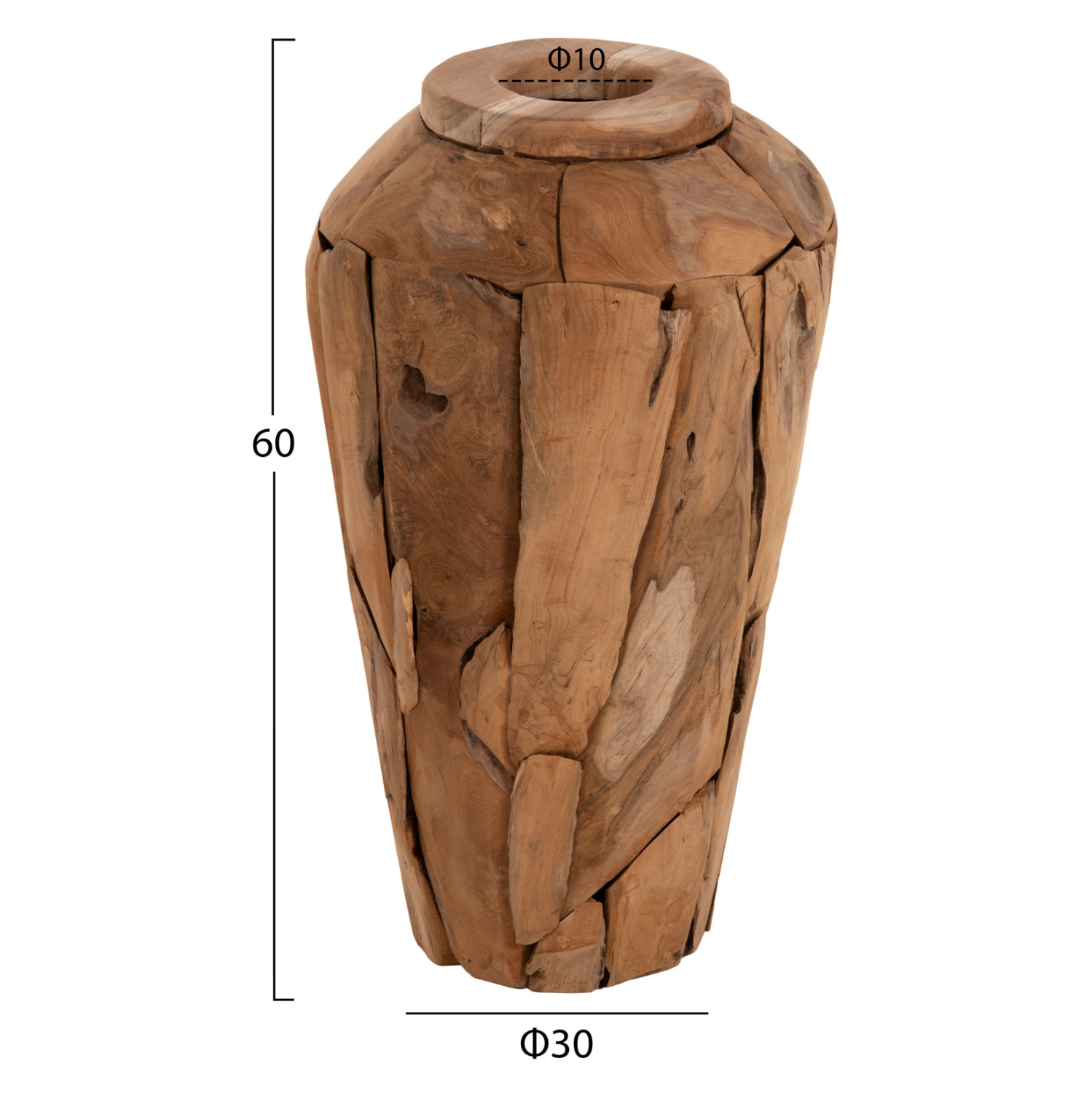 Το βάζο είναι κατασκευασμένο από ανακυκλωμένα ξύλα ΤΕΑΚ. Το ΤΕΑΚ είναι ο πιο δημοφιλής τύπος σκληρού ξύλου. Είναι χρώματος κίτρινο έως σκούρο καφέ, εξαιρετικά βαρύ, υψηλής αντοχής, ανθεκτικό στις καιρικές συνθήκες, ανθεκτικό στο σκέβρωμα και δεν αποσυντίθεται. Χρησιμοποιείται για πληθώρα κατασκευών εσωτερικού και εξωτερικού χώρου.