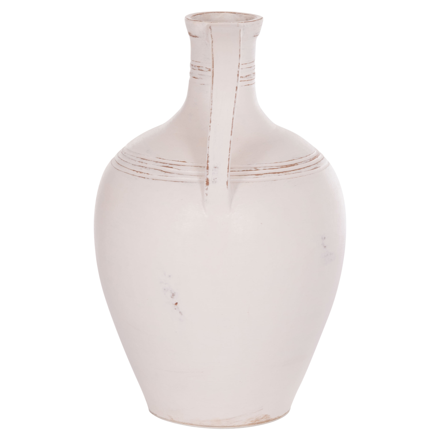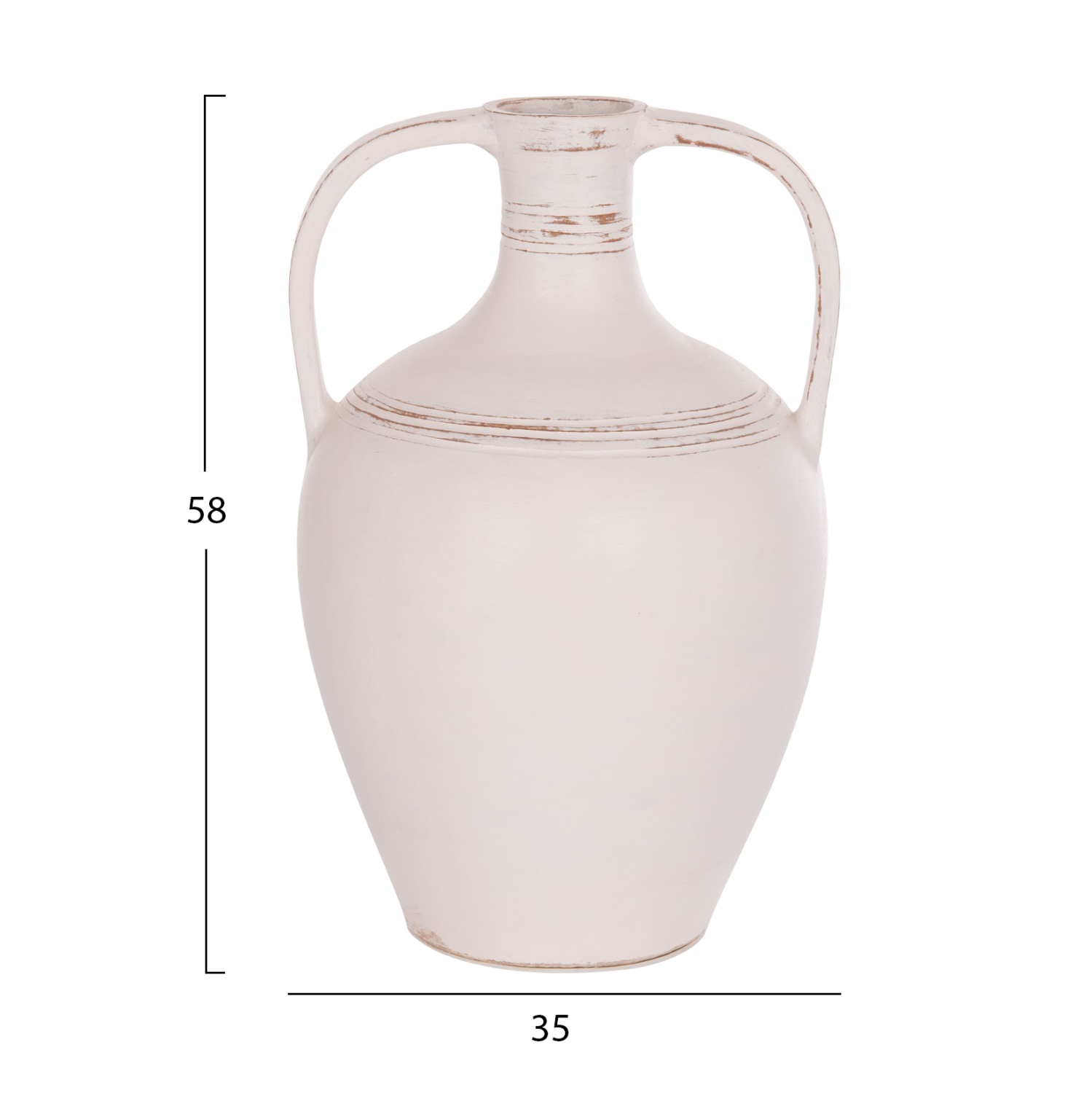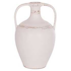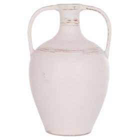 Το χειροποίητο διακοσμητικό βάζο (αμφορέας) FEAX είναι ένα κλασικό διακοσμητικό στοιχείο για κάθε χώρο. Είναι κατασκευασμένο εξολοκλήρου από τερακότα σε ΛΕΥΚΟ χρώμα, με 2 μεγάλες λαβές και σχετικά μικρό στόμιο.