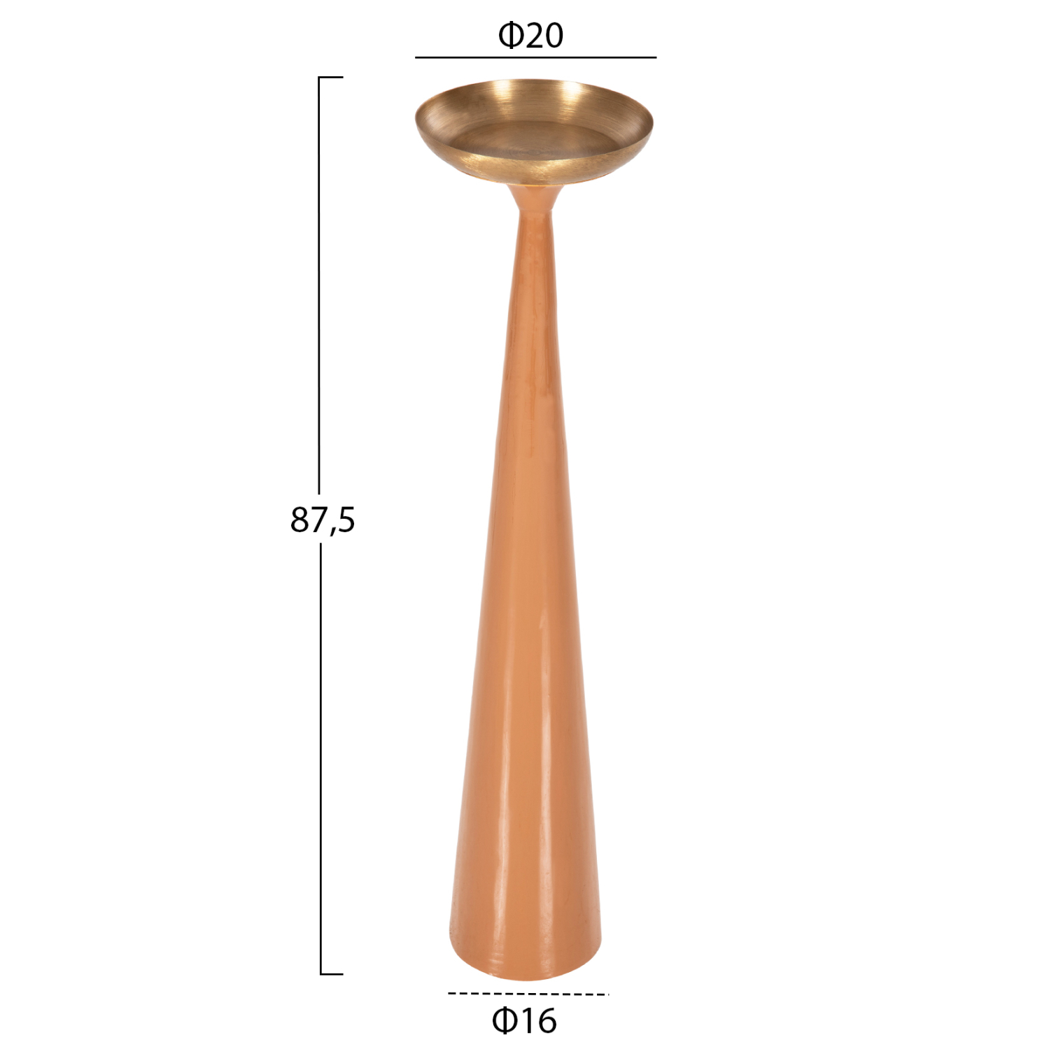 Το GUNTUR είναι ένα διακοσμητικό κηροπήγιο δαπέδου (κυρίως) και αποτελεί ακόμα μια καινούργια προσθήκη στην γκάμα μας. Είναι εξολοκλήρου μεταλλικό και έχει κωνική κολώνα σε ΣΟΜΟΝ χρώμα και «πιατάκι» σε ΧΡΥΣΟ χρώμα. Βέβαια, στο «πιατάκι» εκτός από κεριά μπορείτε να τοποθετήσετε και οτιδήποτε άλλο θέλετε ως διακοσμητικό. Ιδανικό τόσο για το σπίτι, όσο και για επαγγελματικούς χώρους, θα μαγνητίσει το ενδιαφέρον των επισκεπτών.
