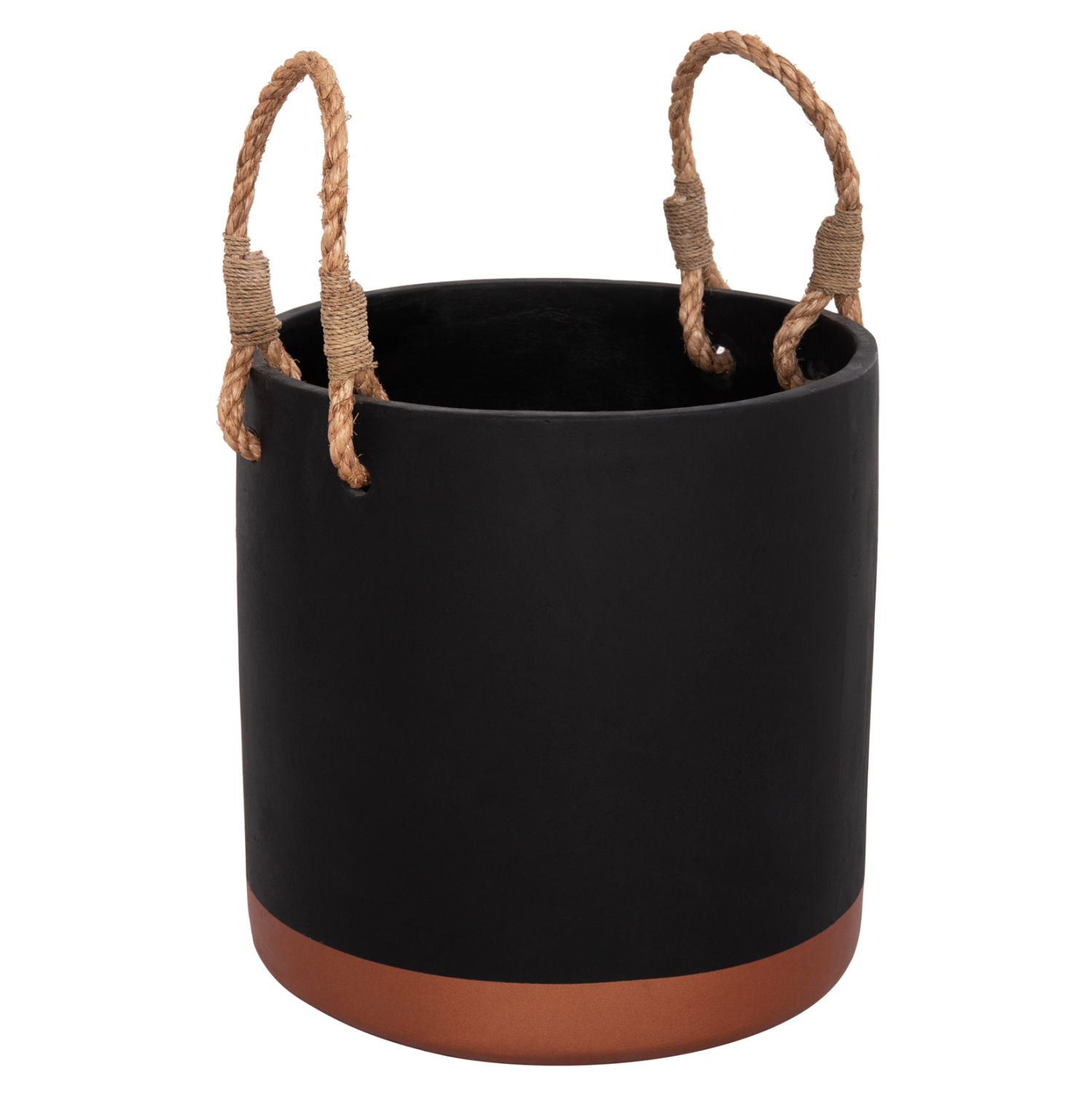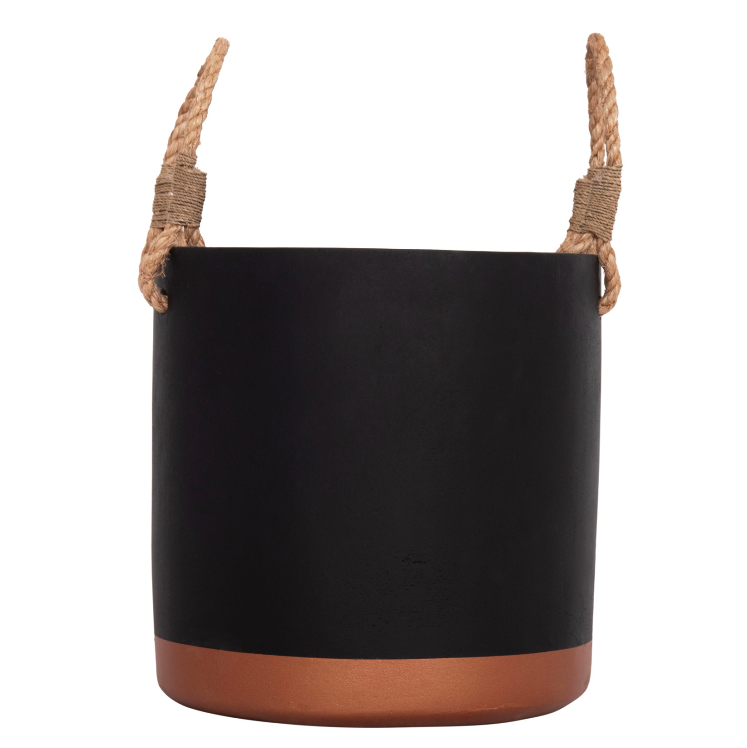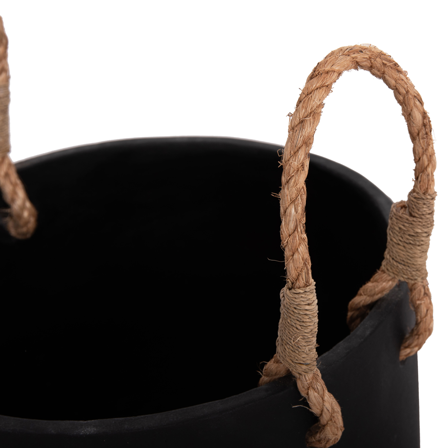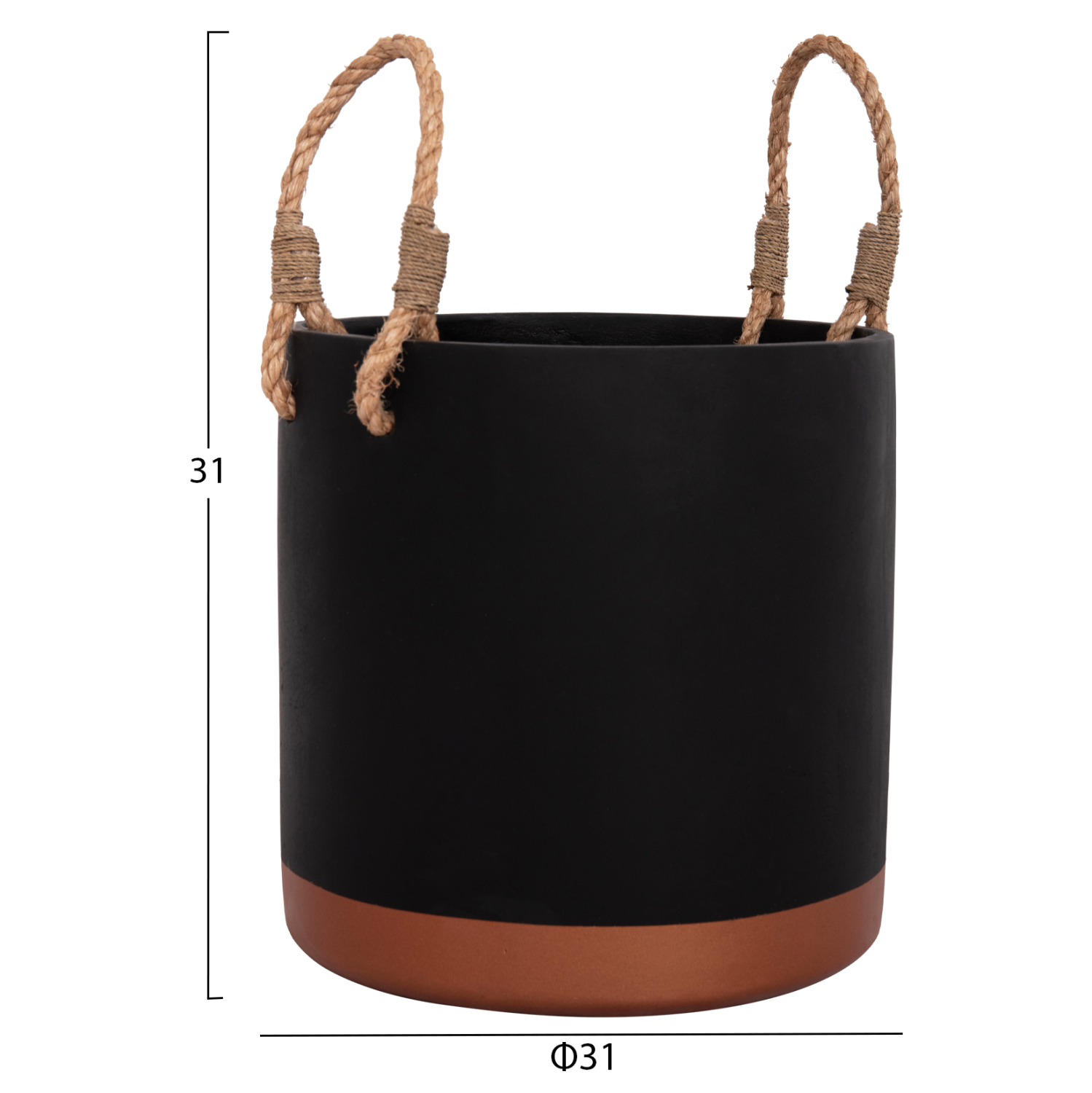 Η γλάστρα της σειράς TRYLL είναι κατασκευασμένη από Fiber Cement σε ΜΑΥΡΟ χρώμα με ΜΠΡΟΝΖΕ περίγραμμα βάσης. Το ιδιαίτερο χαρακτηριστικό της είναι ότι διαθέτουν χερούλια από ανθεκτικό σχοινί για εύκολη μεταφορά.