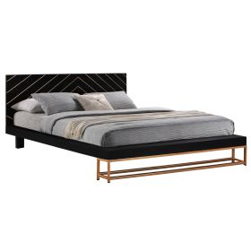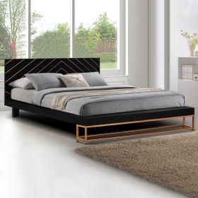Μοντέρνo υπέρδιπλο κρεβάτι "SHERRI",από μασίφ ξύλο Mango σε blue black απόχρωση με εμφανή τα νερά του ξύλου και μεταλλικά πόδια σε χρυσή ματ απόχρωση.