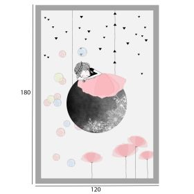 Αυτό το όμορφο χαλί έχει κυρίαρχα χρώματα το ΑΣΠΡΟ σε όλη την επιφάνεια του χαλιού, και μπορντούρα σε ΓΚΡΙ χρώμα. Το σχέδιο του χαλιού είναι μια όμορφη απεικόνιση μιας σφαίρας που παρομοιάζει το φεγγάρι, πάνω στο οποίο κοιμάται ένα κοριτσάκι. Σίγουρα, θα αναβαθμίσει το παιδικό δωμάτιο του σπιτιού και θα του δώσει ένα εντελώς καινούριο look!