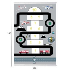 Αυτό το όμορφο χαλί (κυρίως για αγόρια) έχει κυρίαρχο χρώμα το γκρι σε όλη την επιφάνεια του χαλιού, και δεν διαθέτει μπορντούρα. Το σχέδιο του χαλιού, βέβαια, απεικονίζει με μια ποικιλία χρωμάτων το κλασσικό παιχνίδι «κουτσό» με διάφορα σχέδια και δρόμους τριγύρω. Άλλωστε, γιατί να μην είναι το ίδιο το χαλί… παιχνίδι;