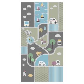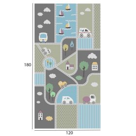 Αυτό το όμορφο χαλί είναι πολύχρωμο, και δεν διαθέτει μπορντούρα. Το σχέδιο του χαλιού είναι μια εικόνα με σχέδια με αυτοκινητάκια, σπιτάκια, δεντράκια, και καραβάκια. Σίγουρα αυτό το χαλί θα γίνει αφορμή να περνάει ατελείωτες ώρες το παιδί πάνω του παίζοντας. Άλλωστε, η φαντασία των παιδιών θα συμπληρώσει άνετα το «σενάριο» του χαλιού!