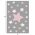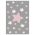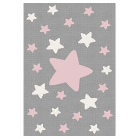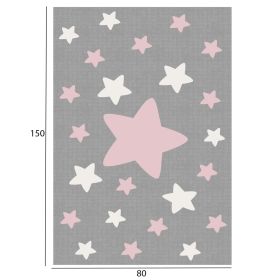 Αυτό το όμορφο χαλί έχει φόντο με κυρίαρχο χρώμα το γκρι σε όλη την επιφάνεια του χαλιού, και δεν διαθέτει μπορντούρα. Το σχέδιο του χαλιού είναι ευχάριστο και απεικονίζει αστέρια άσπρα και ροζ σε διάφορα μεγέθη.