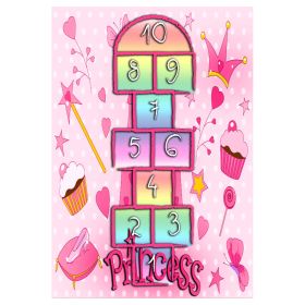 Αυτό το όμορφο χαλί (κυρίως για κορίτσια) έχει κυρίαρχο χρώμα το ΡΟΖ σε όλη την επιφάνεια του χαλιού, και δεν διαθέτει μπορντούρα. Το σχέδιο του χαλιού, βέβαια, απεικονίζει με μια ποικιλία χρωμάτων το κλασσικό παιχνίδι «κουτσό» με διάφορα σχέδια τριγύρω. Άλλωστε, γιατί να μην είναι το ίδιο το χαλί… παιχνίδι;