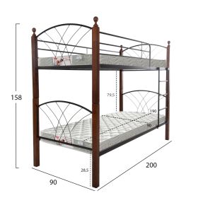 •Η κουκέτα STOREY για μονά στρώματα, είναι μια σύνθεση μετάλλου σε ΜΑΥΡΟ χρώμα και ξύλου rubberwood (καουτσούκ) σε απόχρωση ΚΑΡΥΔΙ. Τα 4 πόδια-κολώνες είναι τα ξύλινα κομμάτια της σύνθεσης, ενώ όλο το υπόλοιπο είναι μεταλλικό.