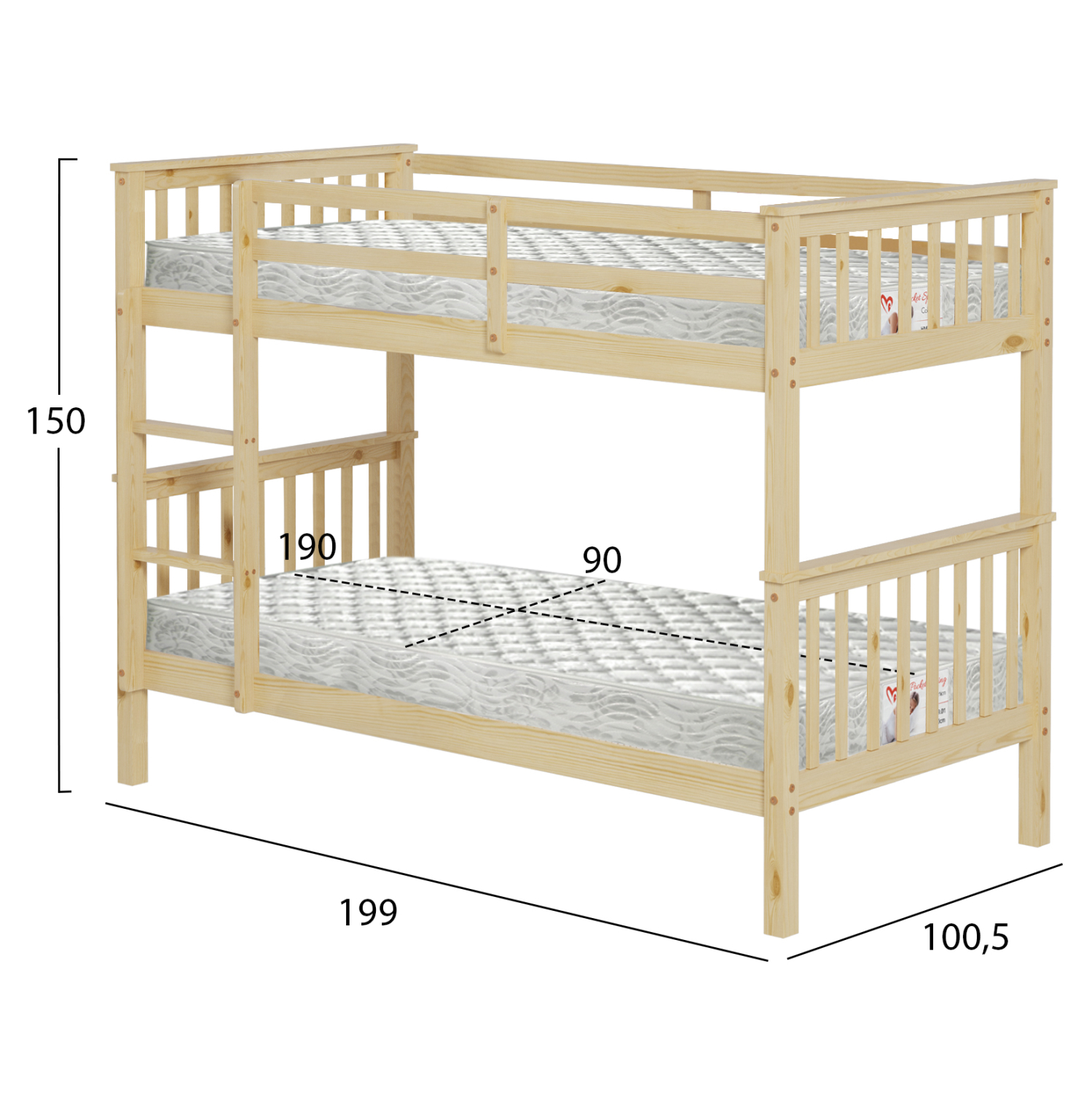 Διαστάσεις στρώματος 90x190 εκ (x2).---- Ύψος στρώματος: 19 εκ.