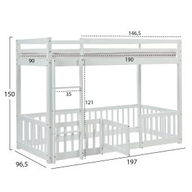 Η παιδική κουκέτα PLAYKID σε διάσταση για στρώμα 90x190εκ, είναι κατασκευασμένη από ξύλο πεύκου σε ΛΕΥΚΟ χρώμα. Η κουκέτα διαθέτει περιμετρικά κάγκελα και σκάλα πρόσβασης στο επάνω κρεβάτι και το κάτω μέρος της κουκέτας είναι διαμορφωμένο ως «παρκάκι» δραστηριοτήτων, ενώ το στρώμα τοποθετείται σε τάβλες από κόντρα-πλακέ ξυλεία.