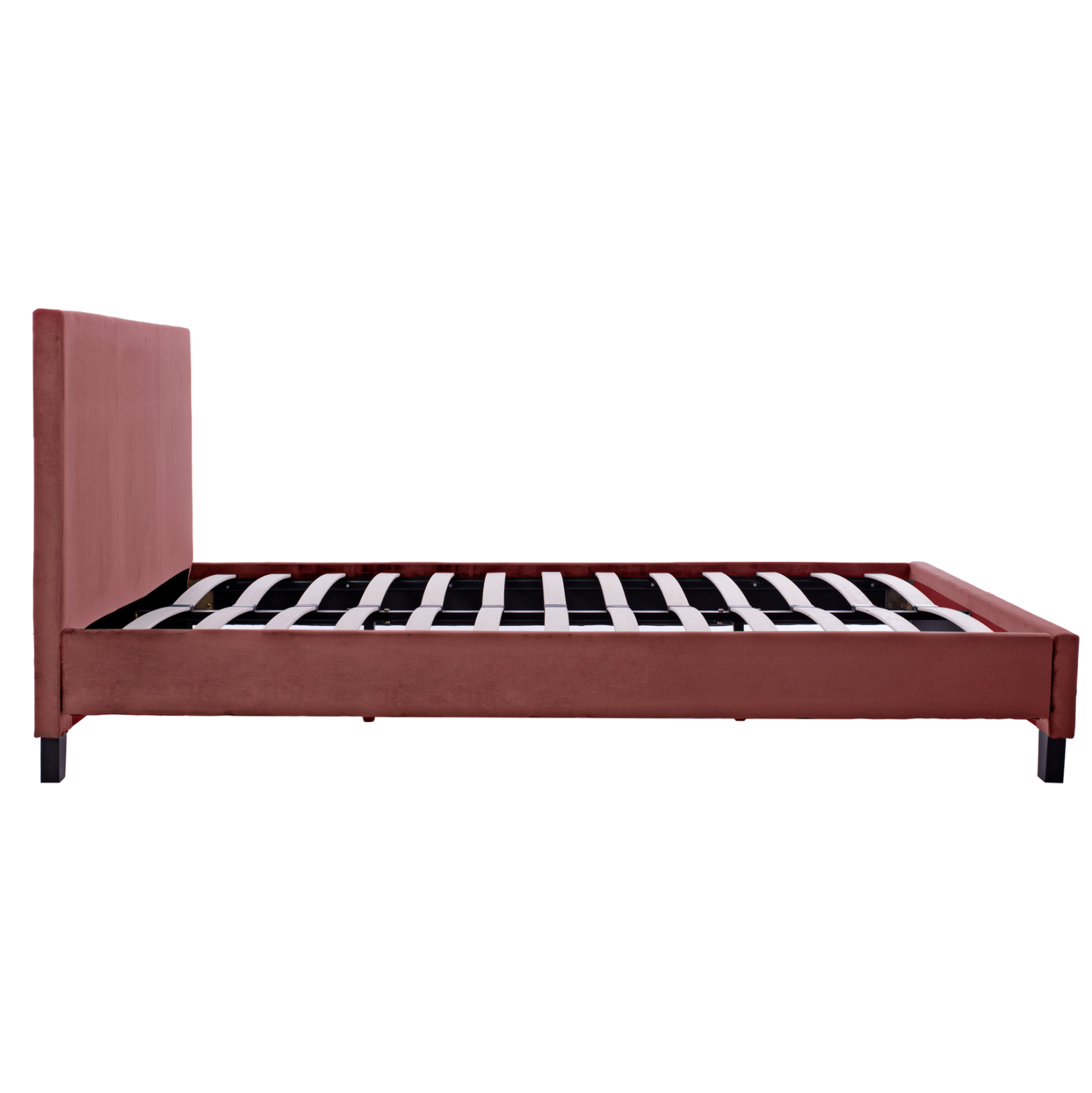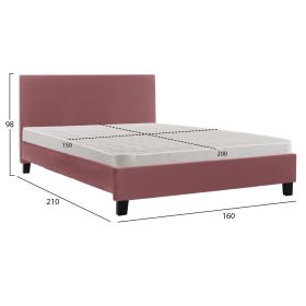 Το διπλό κρεβάτι BECCA είναι επενδυμένο με βελούδο σε ΣΑΠΙΟ ΜΗΛΟ χρώμα. Το στρώμα που συνοδεύει το κρεβάτι τοποθετείται σε δύο σειρές ανατομικές τάβλες, είναι διπλής όψης και είναι τεχνολογίας continuous spring. Τα πόδια είναι σχετικά ψηλά από πολυπροπυλένιο σε μαύρο χρώμα.