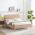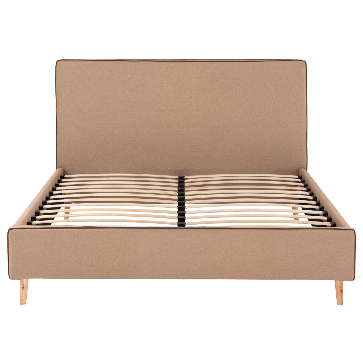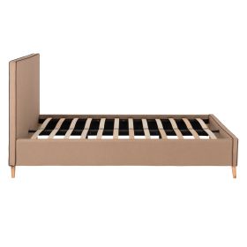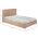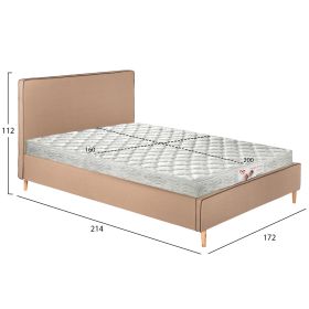 Το υπέρδιπλο κρεβάτι INDRA είναι επενδυμένο με ύφασμα σε χρώμα ΜΠΕΖ με ΚΑΦΕ ρέλι στις ραφές. Το στρώμα που συνοδεύει το κρεβάτι τοποθετείται σε δύο σειρές ανατομικές τάβλες, είναι διπλής όψης και έχει τεχνολογία με pocket springs (ανεξάρτητα ελατήρια). Τα πόδια είναι ξύλινα σε φυσικό χρώμα.
