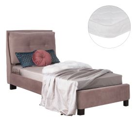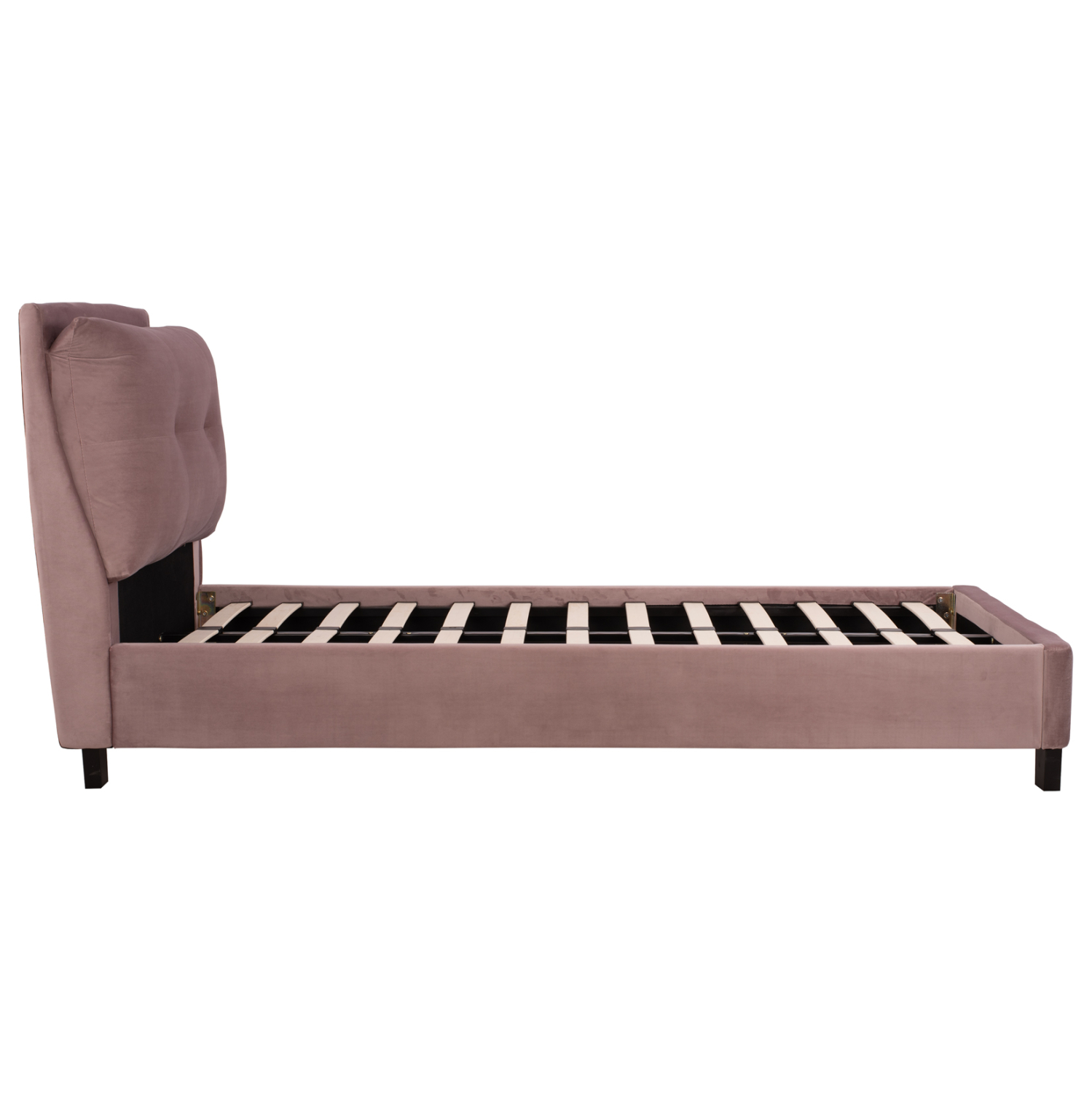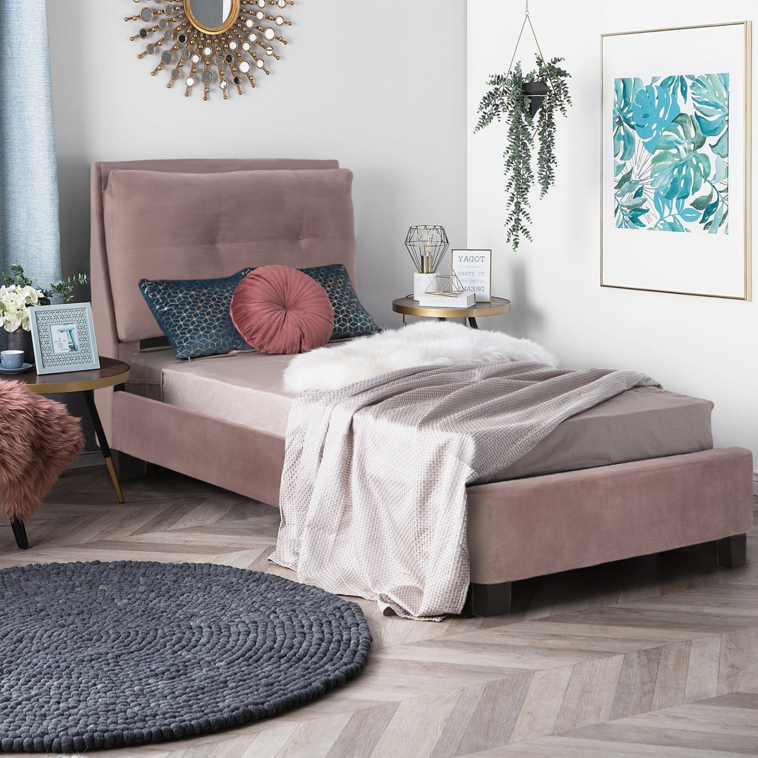 Το μονό κρεβάτι RILEY είναι επενδυμένο με βελούδο σε ΣΑΠΙΟ ΜΗΛΟ χρώμα. Το στρώμα (διατίθεται σε ROLL-PACKING*) που συνοδεύει το κρεβάτι τοποθετείται σε δύο σειρές ανατομικές τάβλες, είναι διπλής όψης και είναι ΑΦΡΟΥ χωρίς ελατήρια. Τα πόδια είναι σχετικά ψηλά από πολυπροπυλένιο σε μαύρο χρώμα.