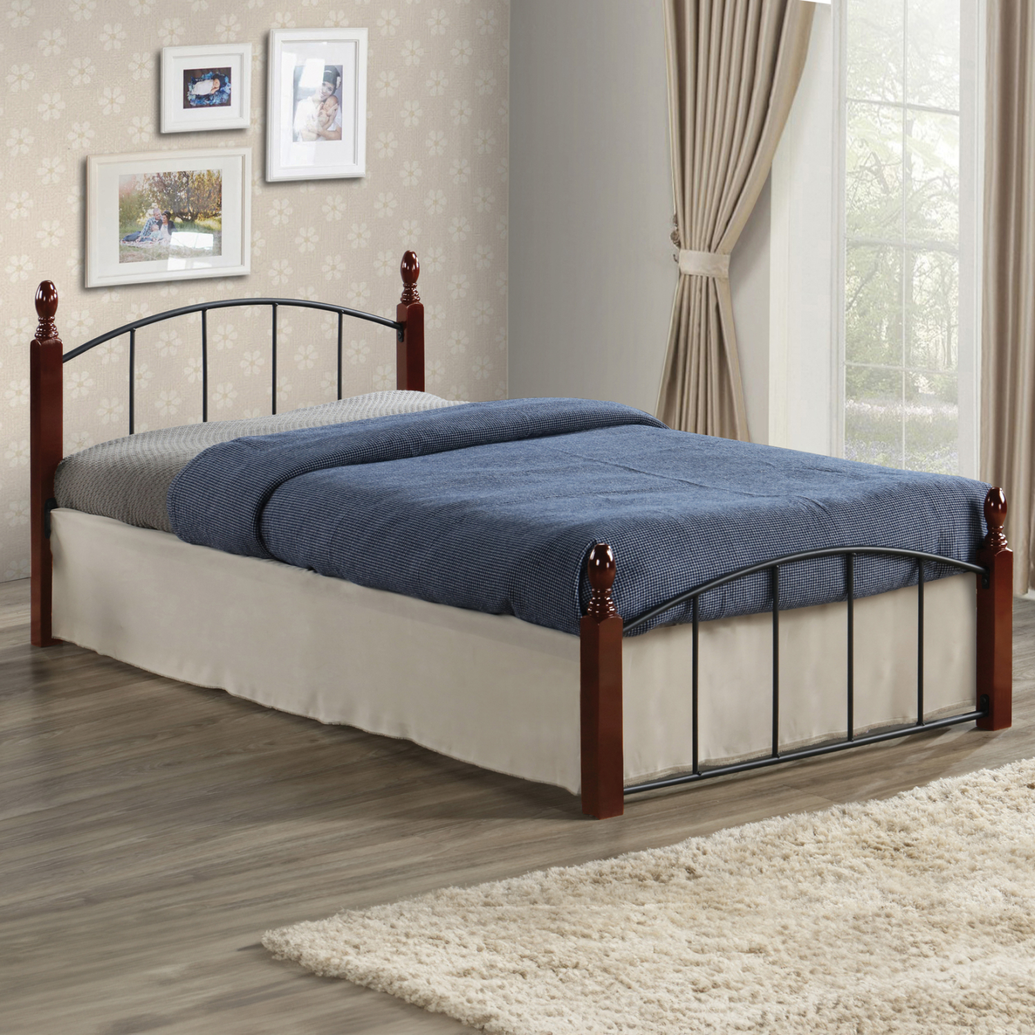 •Το κρεβάτι MAKAI σε διάσταση μονού στρώματος, είναι μια σύνθεση μετάλλου σε ΜΑΥΡΟ χρώμα και ξύλου σε απόχρωση ΚΑΡΥΔΙ. Τα 4 πόδια-κολώνες είναι τα ξύλινα κομμάτια της σύνθεσης, ενώ όλο το υπόλοιπο είναι μεταλλικό.