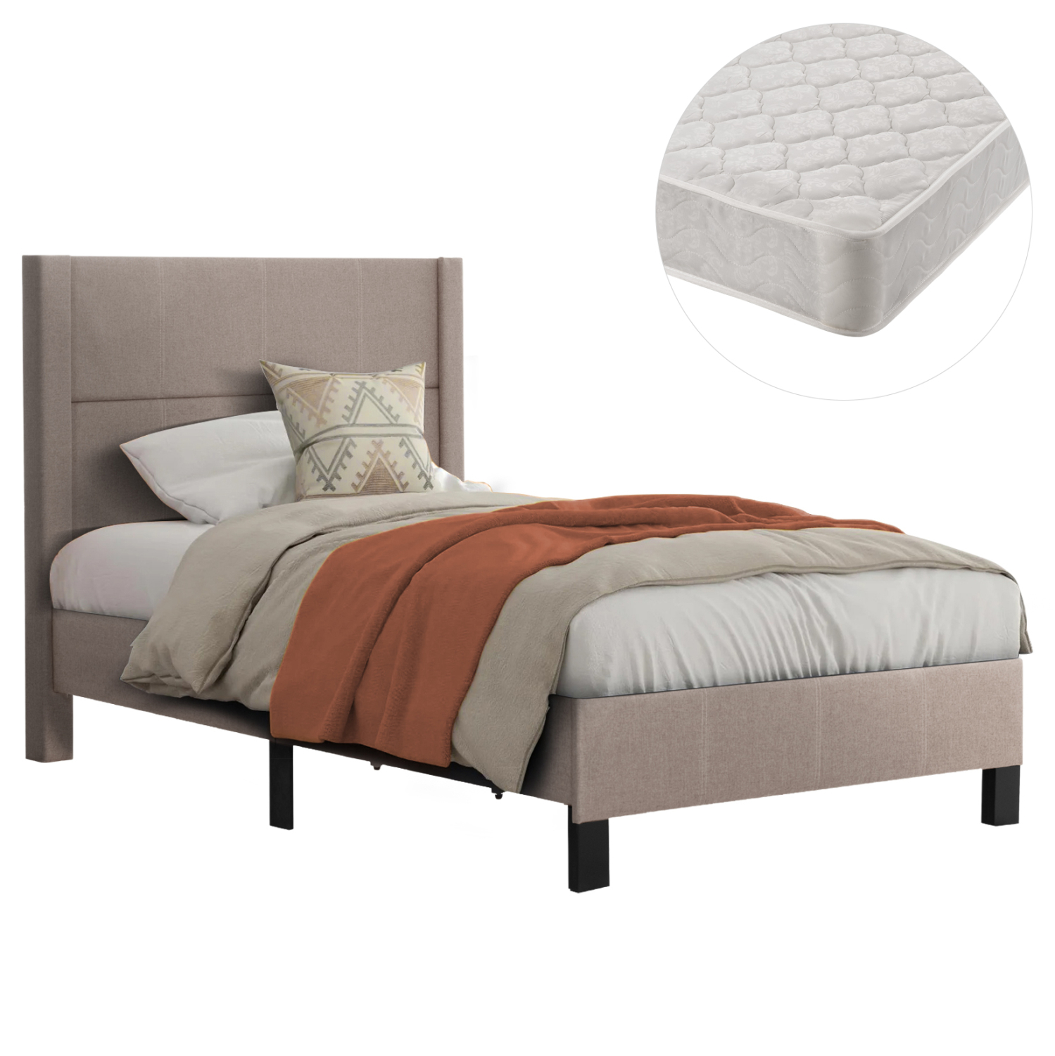 Το μονό κρεβάτι TRILLOP διαθέτει ψηλό κεφαλάρι, επενδυμένο με ανάγλυφο ύφασμα σε ΜΠΕΖ χρώμα με καπιτονέ τεχνοτροπία σε μεγάλα τετράγωνα, όπως και όλο το κρεβάτι. Η στήριξη του στρώματος γίνεται με κλασικές τάβλες οι οποίες εμπεριέχονται στην συσκευασία και στην τιμή. Ιδανικό κρεβάτι τόσο για το σπίτι, όσο και για επαγγελματικούς χώρους, όπως ξενοδοχεία και Airbnb. Άλλωστε, ακόμα κι η συναρμολόγησή του είναι πανεύκολη, αφού όλα τα απαραίτητα περιέχονται στην συσκευασία.