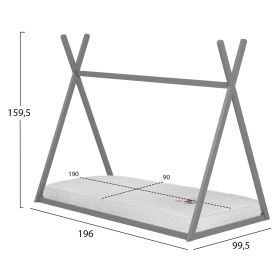 Το παιδικό κρεβάτι MUNK τύπου Montessori σε διάσταση για στρώμα 90x190εκ, είναι κατασκευασμένο από ξύλο πεύκου σε ΓΚΡΙ χρώμα. Το κρεβάτι έχει σχήμα σκηνής και «κάθεται» απευθείας στο έδαφος, ενώ το στρώμα τοποθετείται σε τάβλες από κόντρα-πλακέ ξυλεία.