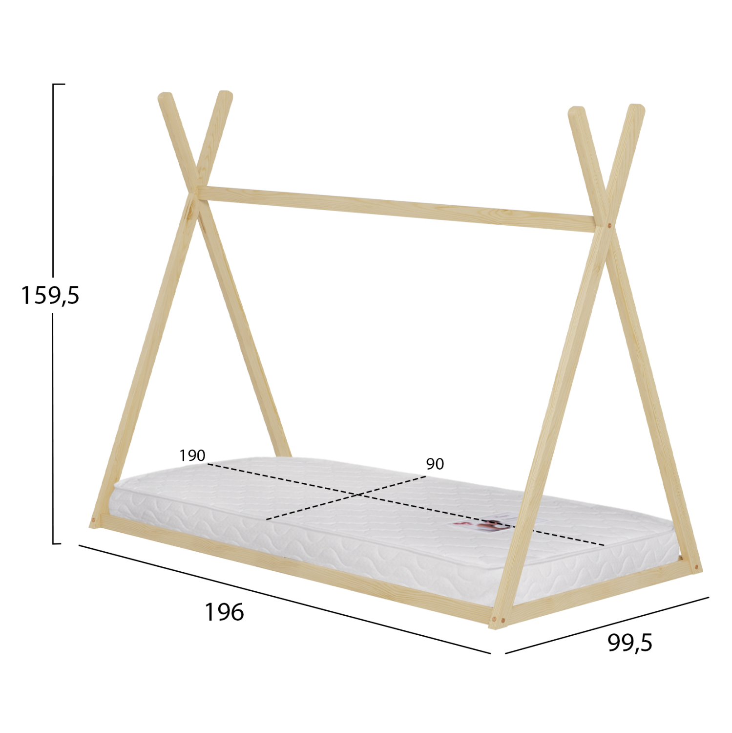 Το παιδικό κρεβάτι MUNK τύπου Montessori σε διάσταση για στρώμα 90x190εκ, είναι κατασκευασμένο από ξύλο πεύκου σε ΦΥΣΙΚΟ χρώμα. Το κρεβάτι έχει σχήμα σκηνής και «κάθεται» απευθείας στο έδαφος, ενώ το στρώμα τοποθετείται σε τάβλες από κόντρα-πλακέ ξυλεία.