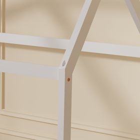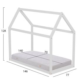 Το μικρό παιδικό κρεβάτι PEPE τύπου Montessori σε διάσταση για στρώμα 70x140εκ, είναι κατασκευασμένο από ξύλο πεύκου σε ΛΕΥΚΟ χρώμα. Όλο το κρεβατάκι έχει σχήμα σπιτιού και πατάει απευθείας στο έδαφος, ενώ το στρώμα τοποθετείται σε τάβλες από κόντρα-πλακέ ξυλεία.