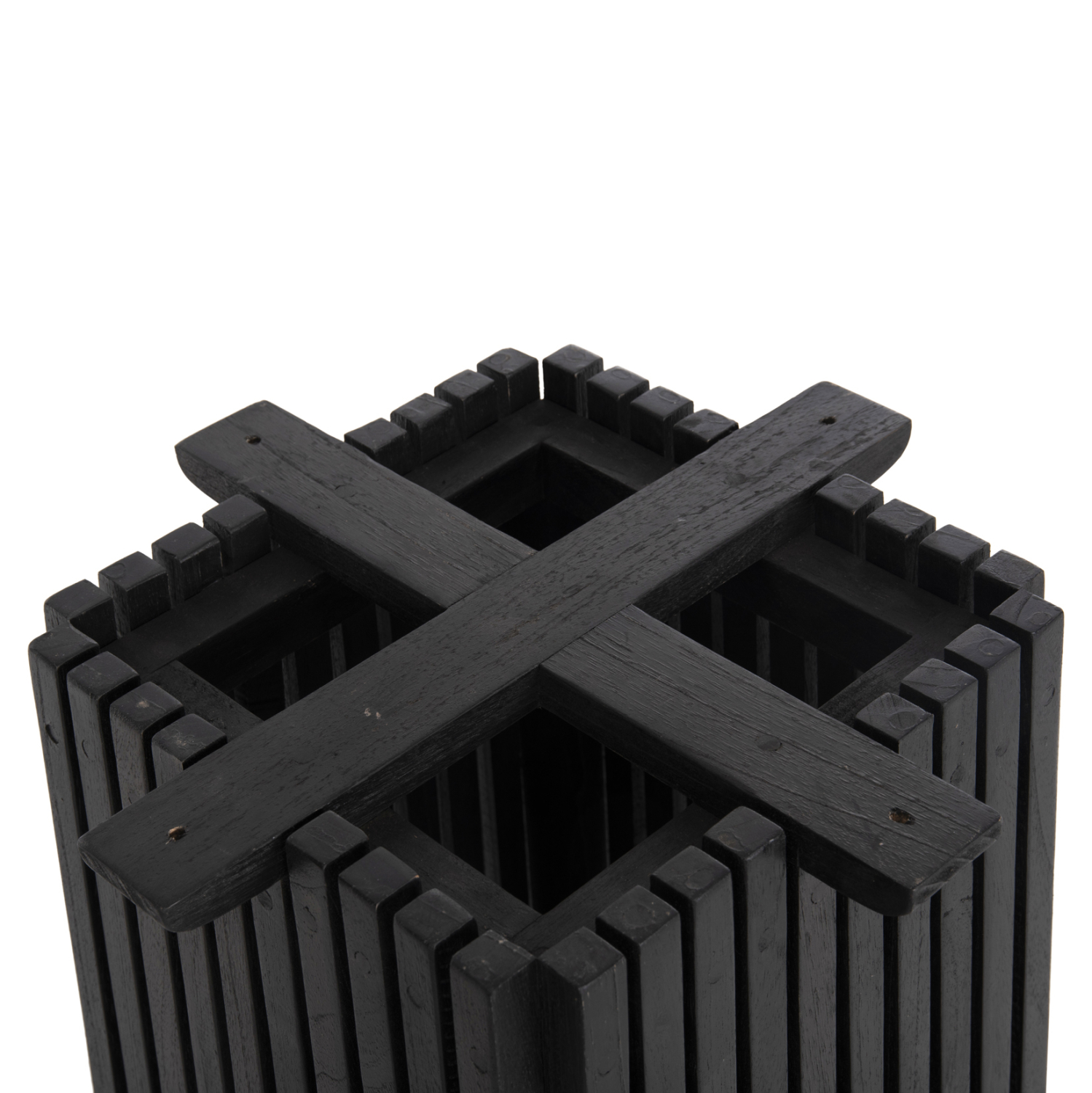 Η τετράγωνη FRANTZ είναι βάση/πόδια για τραπέζι BAR με ικανοποιητικές διαστάσεις σε ΜΑΥΡΟ χρώμα. Αυτή η βάση είναι μια ξύλινη κατασκευή με πολλές δοκούς σε διάταξη πυραμίδας (με τετράγωνη βάση).