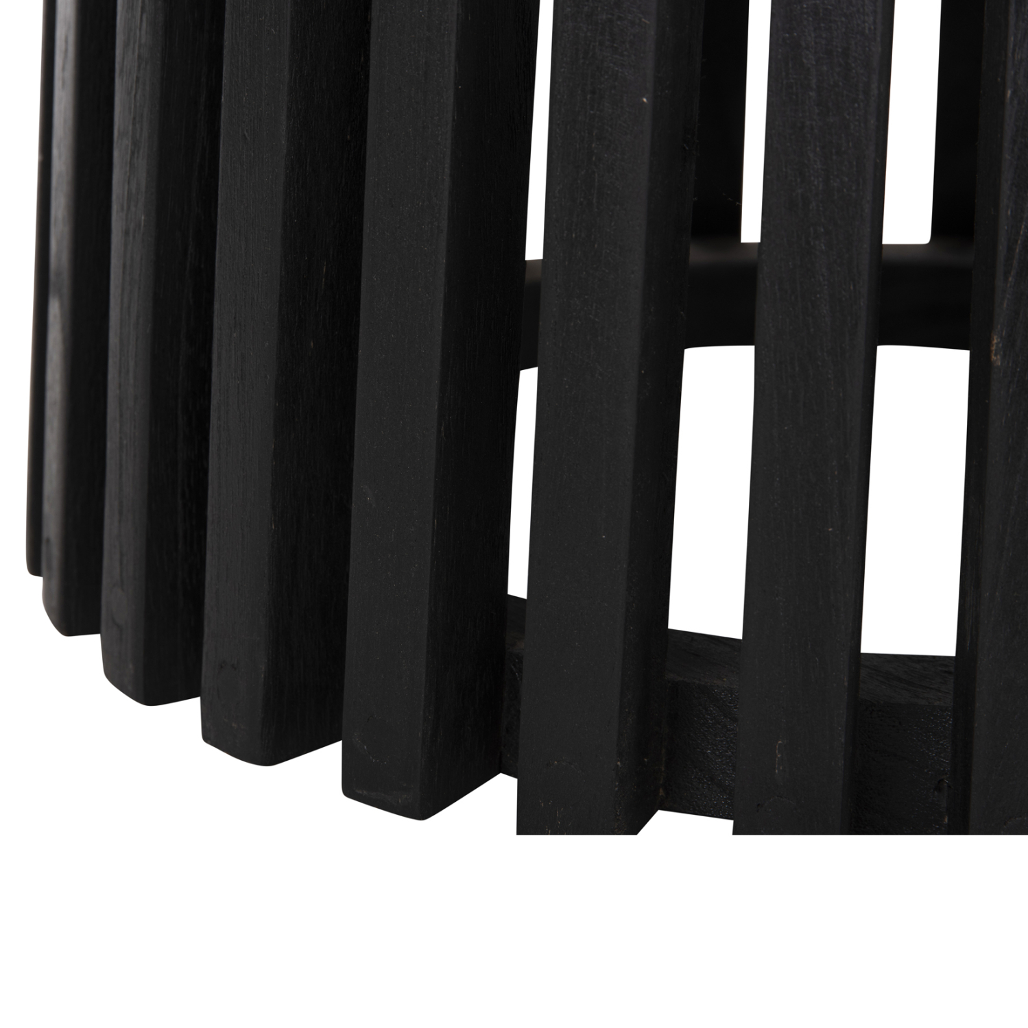 Η FRANTZ είναι βάση/πόδια για στρογγυλό τραπέζι, με ικανοποιητικές διαστάσεις σε έντονο ΜΑΥΡΟ χρώμα. Αυτή η βάση είναι μια ξύλινη κατασκευή με πολλές δοκούς σε κυκλική-κωνική διάταξη που ενώνονται μεταξύ τους με δακτυλίους επάνω και κάτω στην εσωτερική πλευρά.