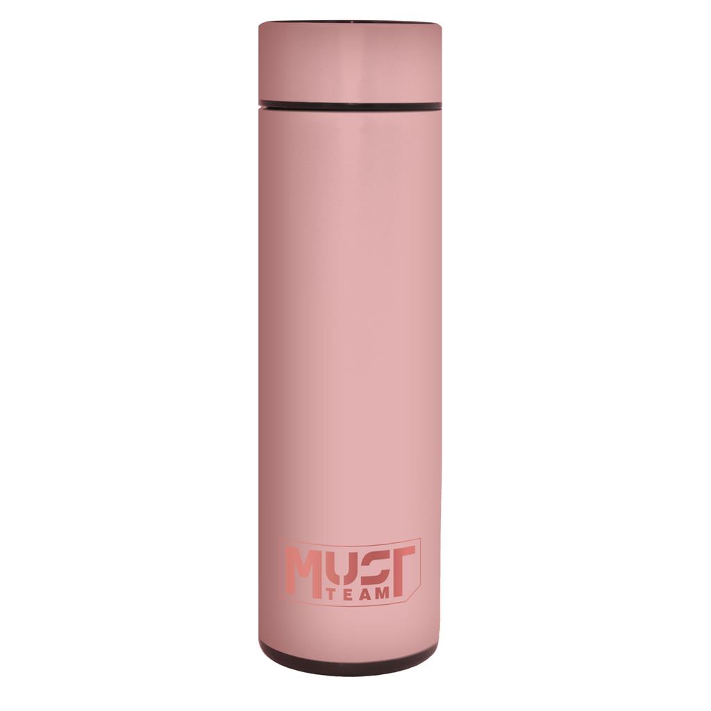 Θερμός Must 500ml Ανοξείδωτο με ένδειξη θερμοκρασίας LED και rubber υφή σε ροζ χρώμα, ιδανικό για την απόλαυση αγαπημένων ζεστών και κρύων ροφημάτων με τον πιο ασφαλή και υγιεινό τρόπο σε κάθε αθλητική δραστηριότητα, το σχολείο, την εργασία και τις καθημερινές βόλτες!