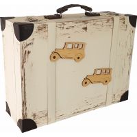 Ξύλινη βαλίτσα vintage σε φυσικό χρώμα με ξύλινα αυτοκίνητα. Παράδοση σε 8-10 εργάσιμες μέρες. Mouchtaris 21025
