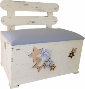 Ξύλινο κουτί βάπτισης καναπές σιέλ με αστέρια. Παράδοση 8-10 εργάσιμες μέρες. Mouchtaris 21014