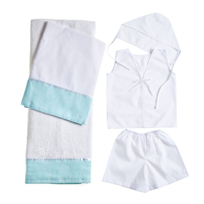 Λαδόπανα σετ για αγόρι σε εκρού ή λευκό χρώμα με λινή βεραμάν φάσα. Παράδοση σε 5-10 εργάσιμες μέρες.